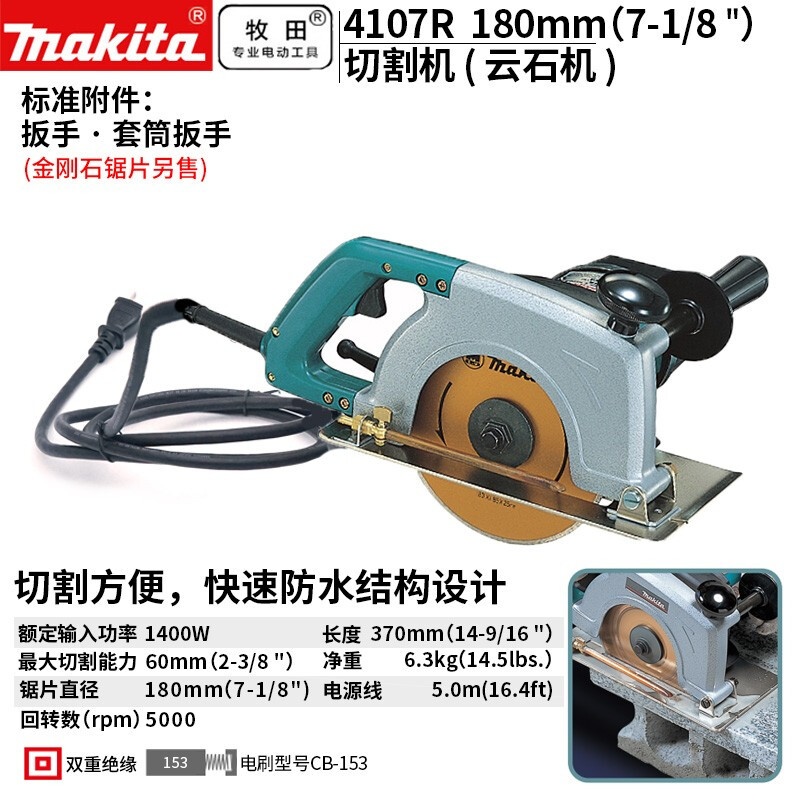 牧田/MAKITA 4107R切割机插电大功率 手提电锯开槽机1400W 180mm
