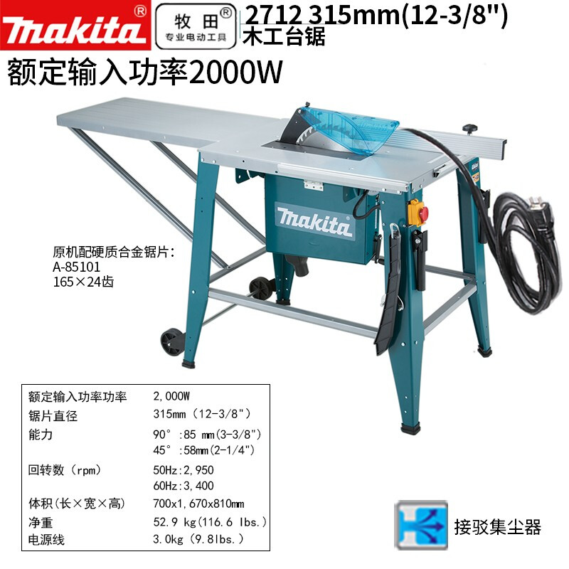 牧田/MAKITA 2712 木工台锯315mm12寸大切割高度精密多功能木工小型可移动电锯