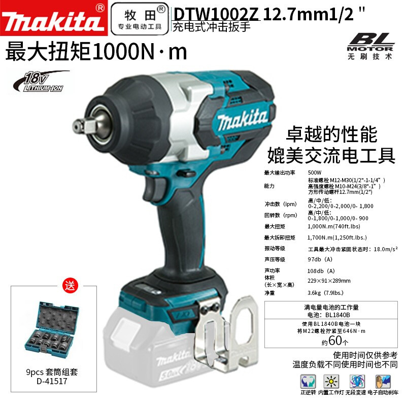 牧田/MAKITA DTW1002Z无刷锂电冲击扳手 18V裸机版12.7mm(1/2)