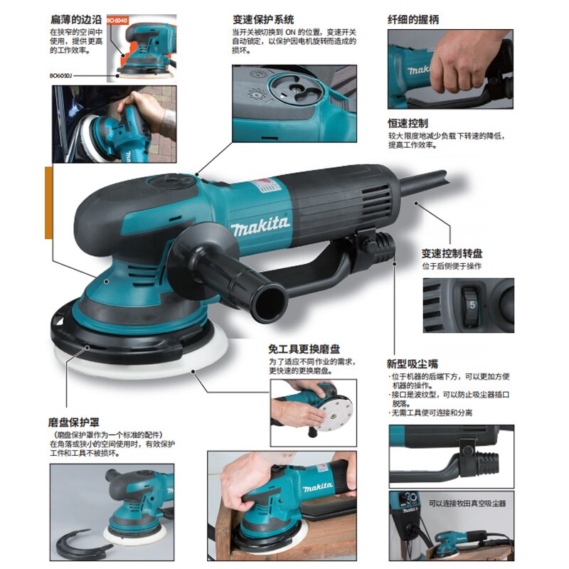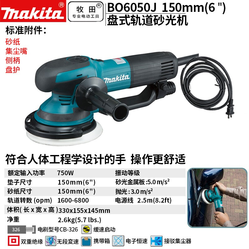 牧田/MAKITA BO6050J盘式轨道砂光机砂纸机打磨机 150mm