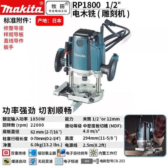牧田/MAKITA RP1800修边机1/2插电式电木铣雕刻机电刨 1850W