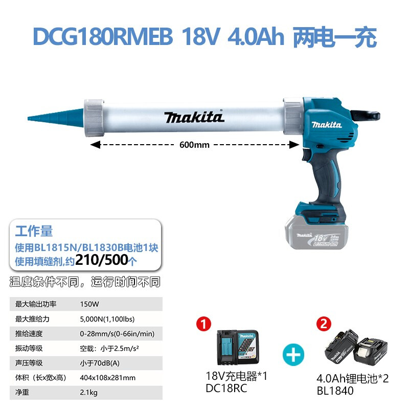 牧田/MAKITA DCG180RMEB锂电池充电式填缝枪 600ML托架18V4.0AH两电一充