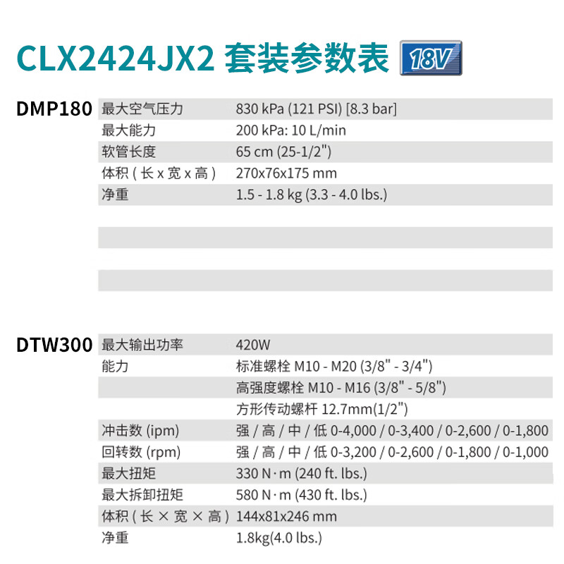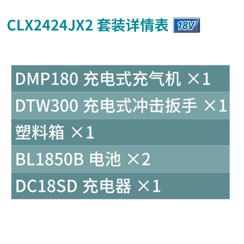 牧田/MAKITA DLX2424JX2锂电充电式大扭力冲击扳手DTW300+DMP180打气泵充气轮胎安装 18V5.0Ah两电一充套装
