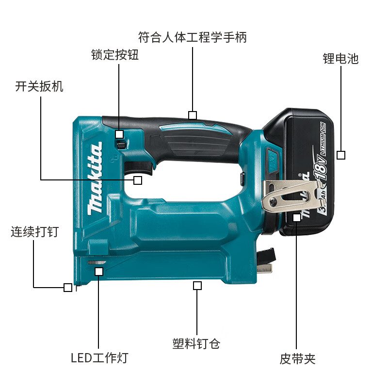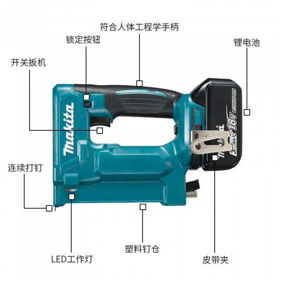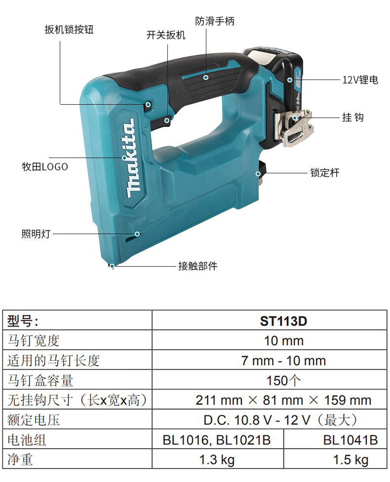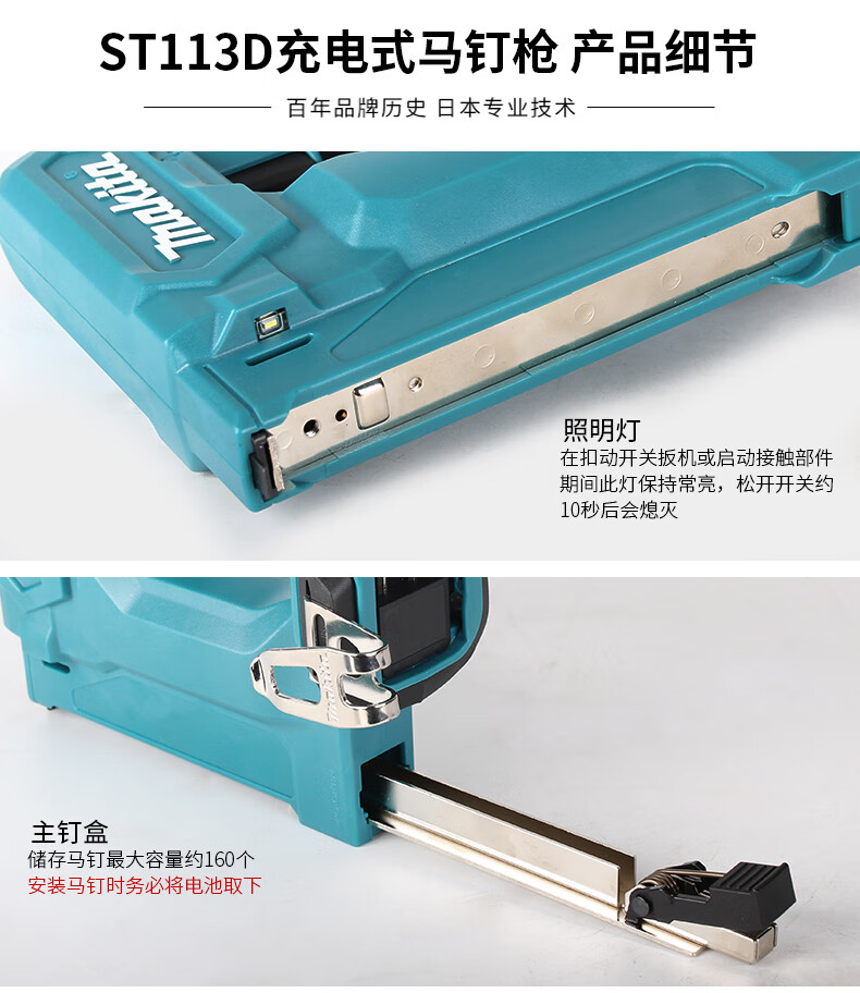 MAKITA/牧田充电式码钉枪 ST113DSAJ 包含两电一充 12V/2Ah 塑箱