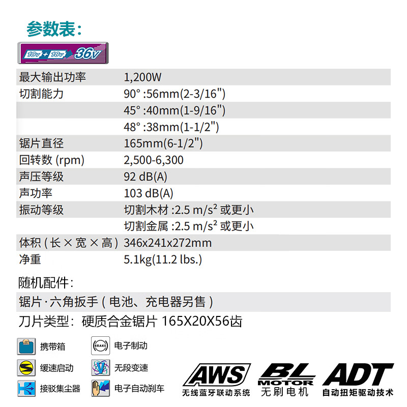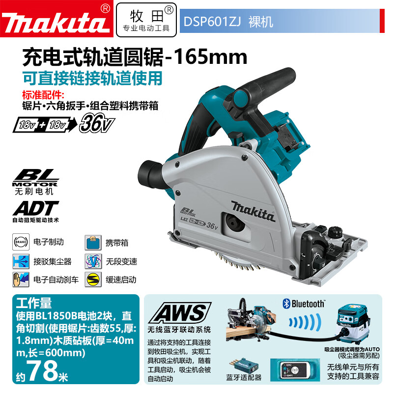 牧田/MAKITA DSP601ZJ无刷木工切割机锂电锯 裸机不含充电器电池165mm6寸