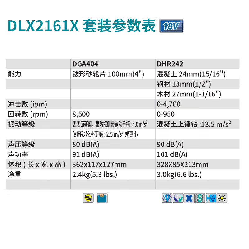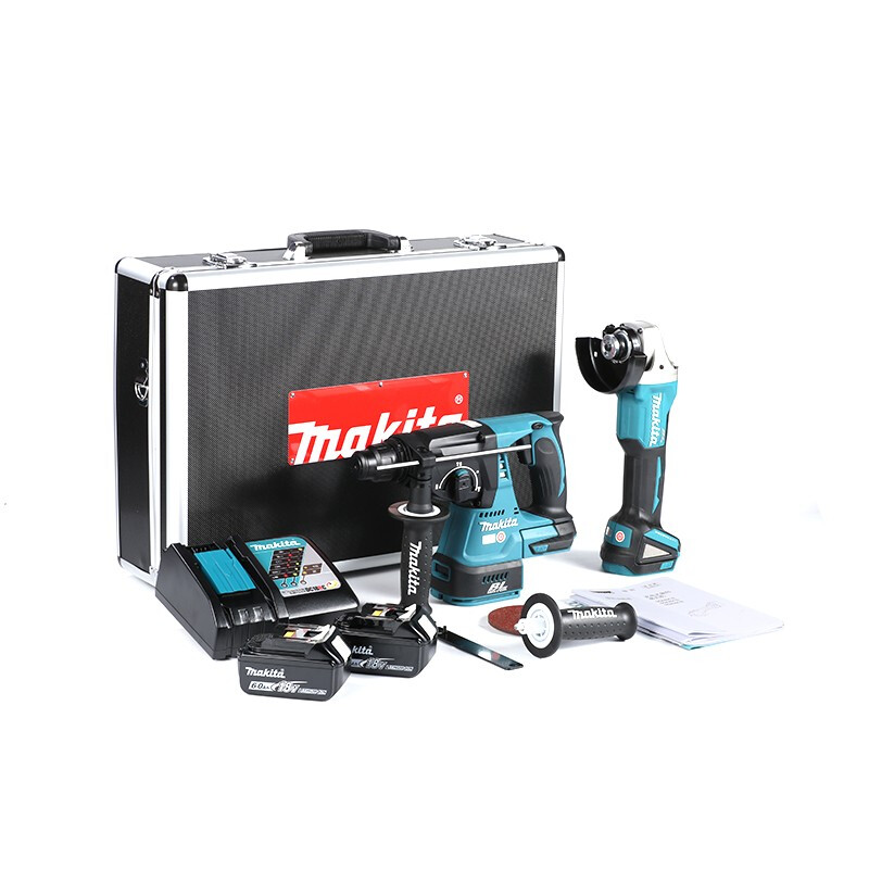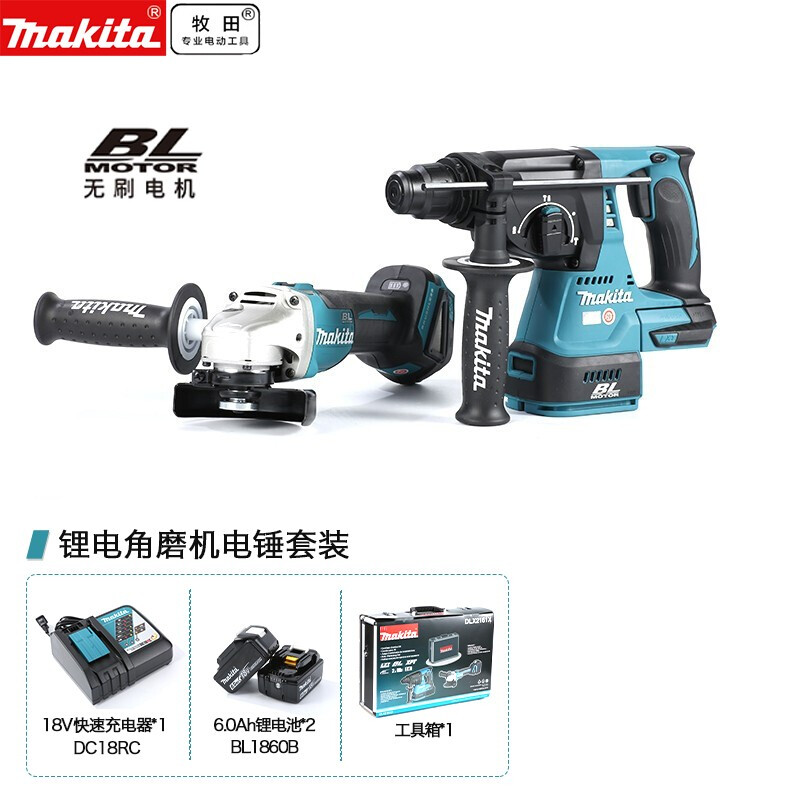 牧田/MAKITA DLX2161X无刷锂电充电式角磨机 DGA404电锤冲击钻DHR242组合套装18V6.0Ah两电一充套装