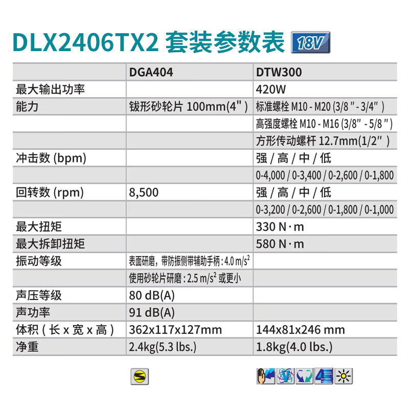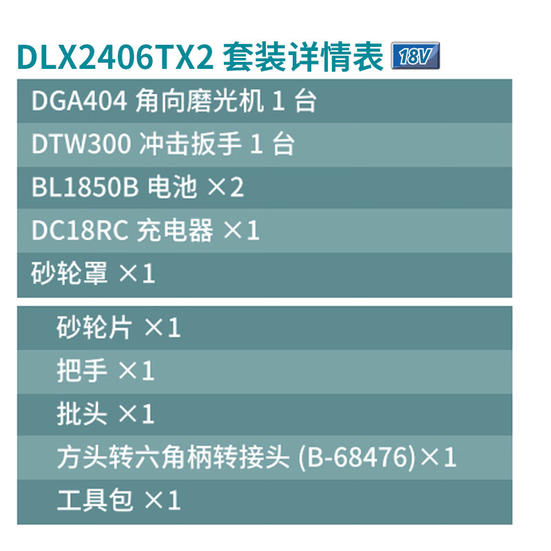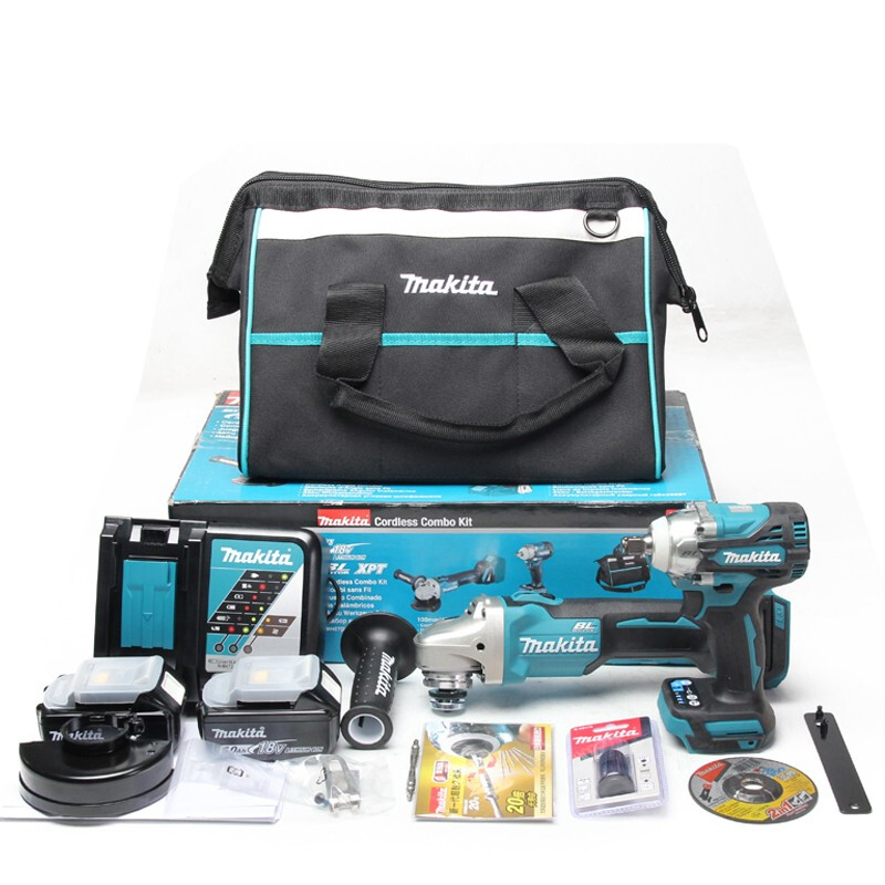 牧田/MAKITA DLX2406TX2锂电池充电式角向磨光机DGA404+DTW300充电式冲击扳手套装5.0Ah两电一充18V