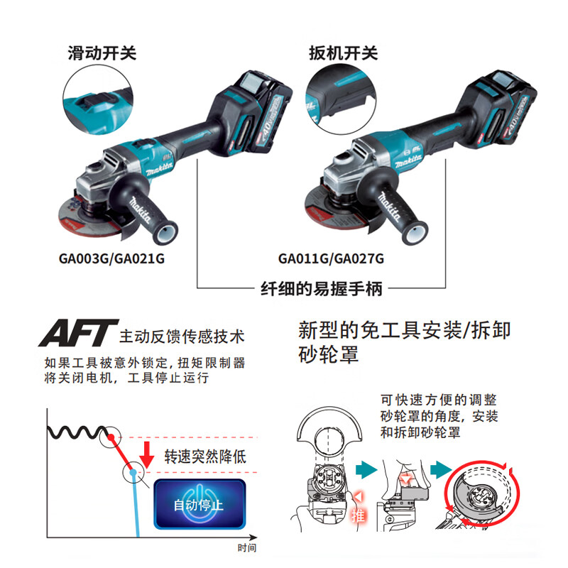 牧田/MAKITA GA003GD201充电式角向磨光机无刷多功能 40V100mm2.5Ah两电一充
