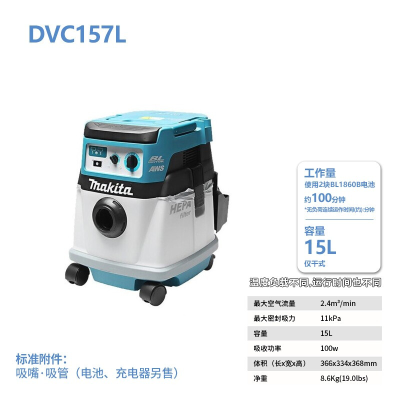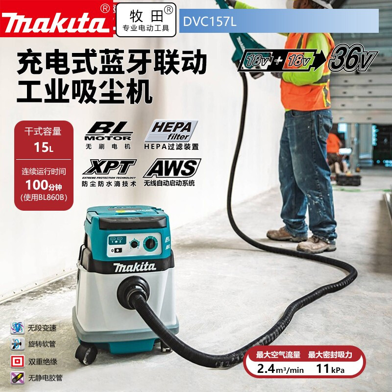 牧田/MAKITA DVC157L锂电池充电式吸尘器干用15L蓝牙无线 裸机