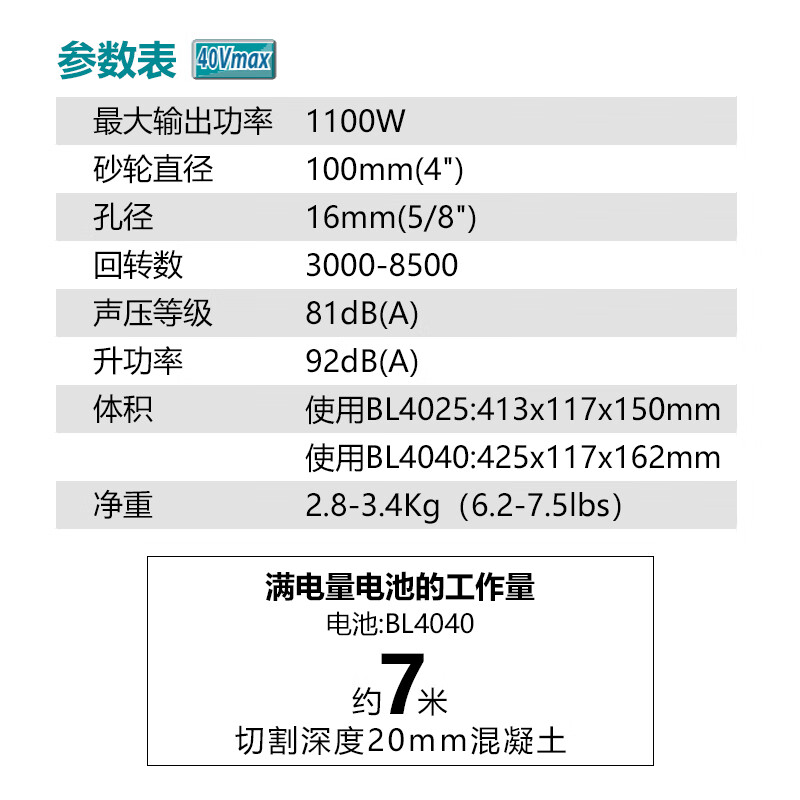 牧田/MAKITA GA021GD201充电式角向磨光机4寸100mm多功能 抛光机40V2.5AH两电一充
