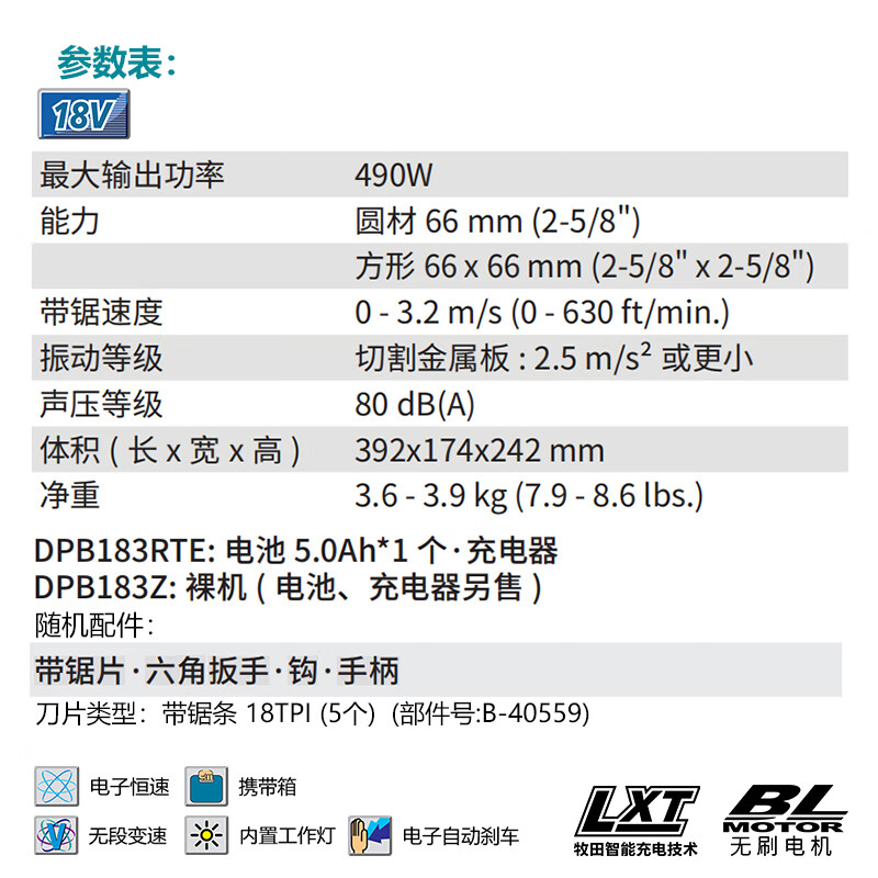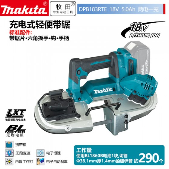 牧田/MAKITA DPB183RTE充电轻便带锯金属带锯机 18V5.0AH两电一充