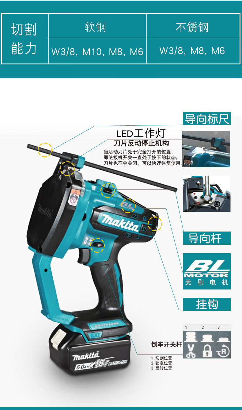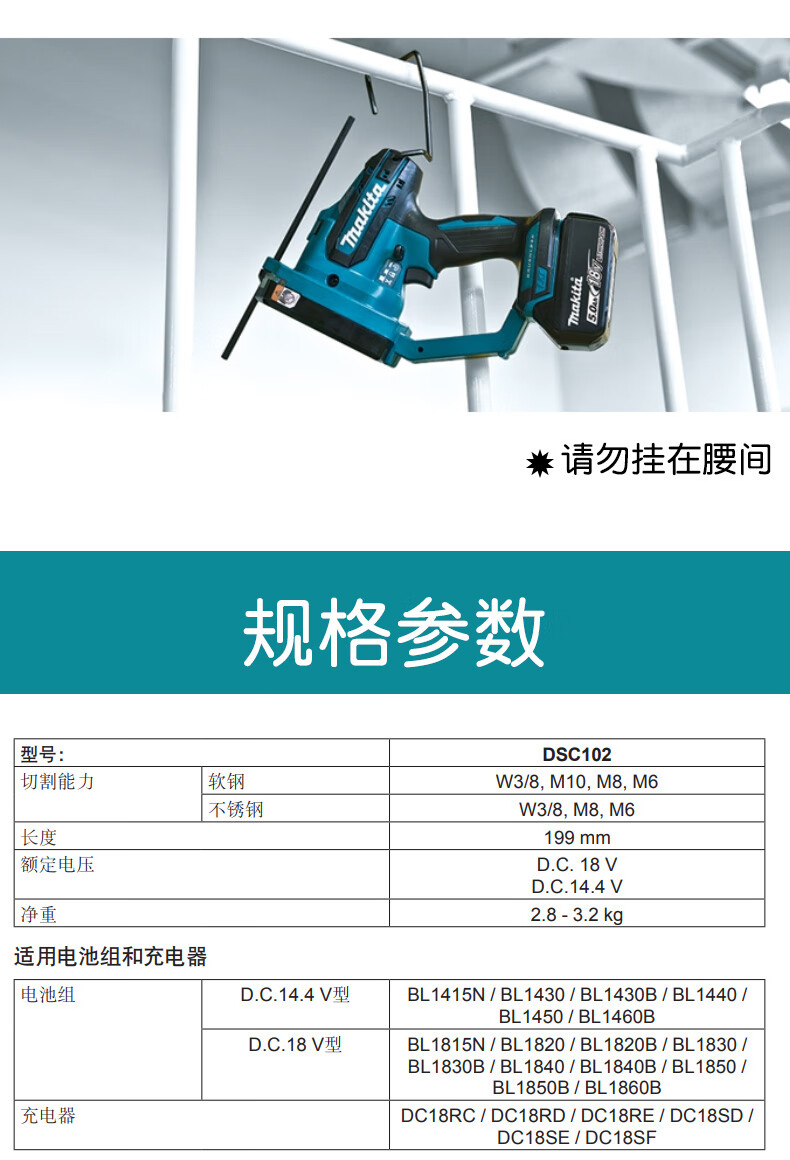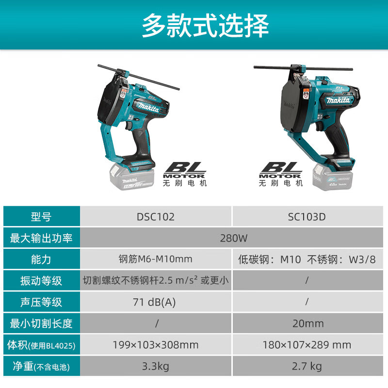 牧田(MAKITA)18V无刷锂电充电式钢筋切断机DSC102ZJ 【裸机不含电池充电器】