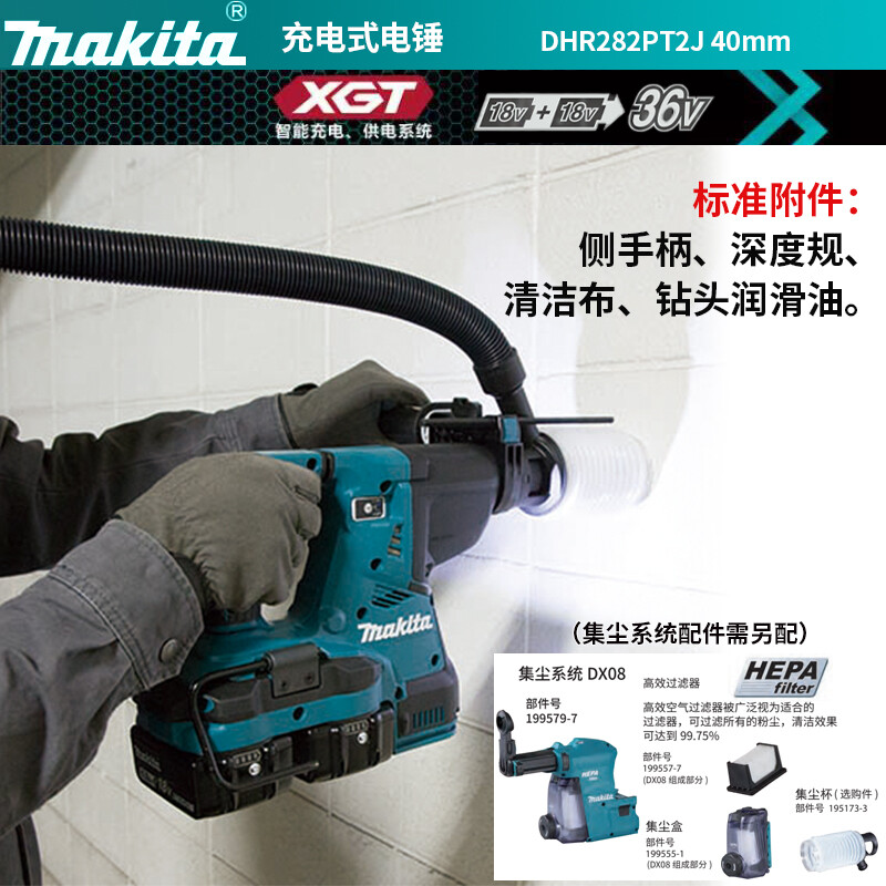 牧田/MAKITA DHR282PT2J锂电池充电式电锤高功率无刷电机 36V 5.0Ah两电一充(双口)