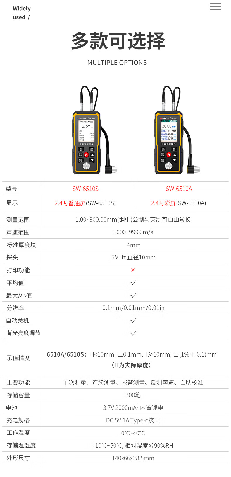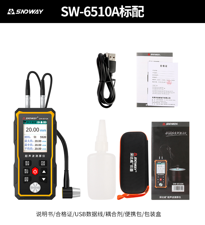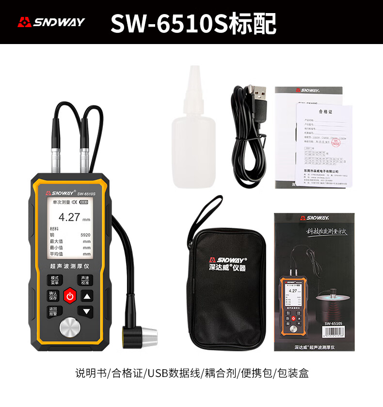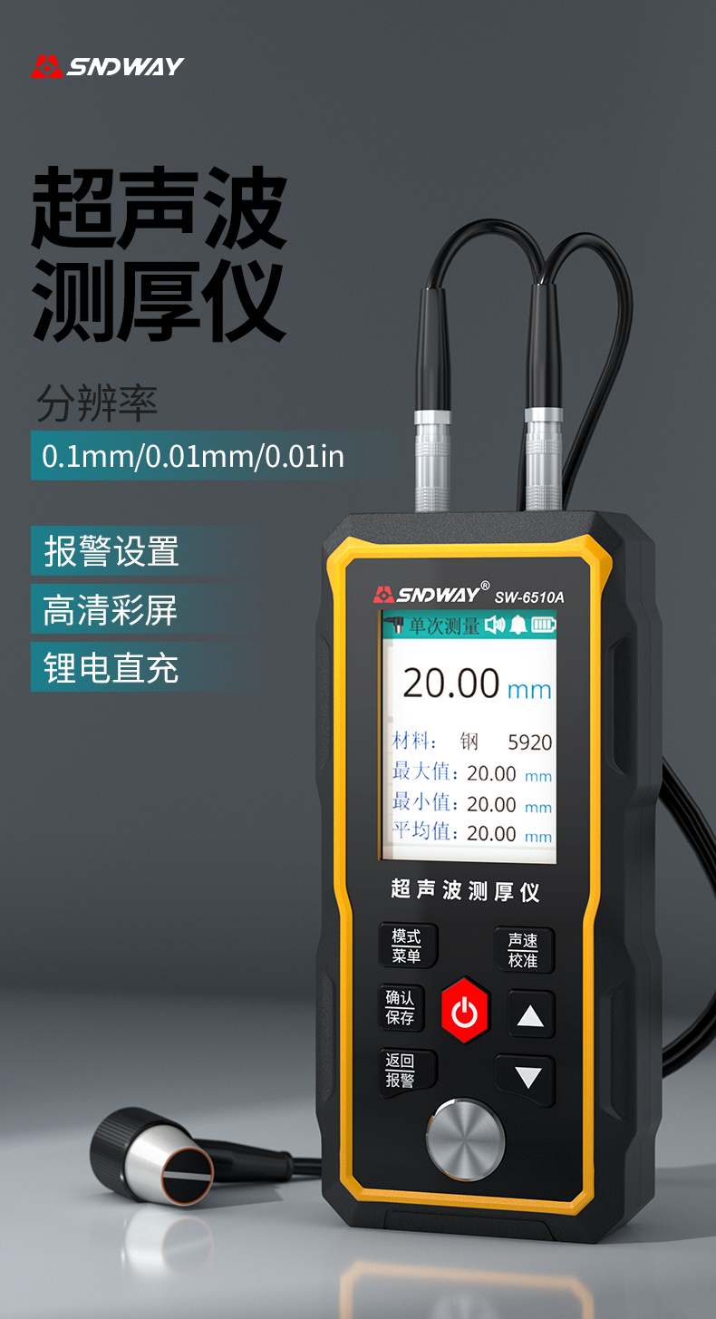 深达威 (SNDWAY) 超声波测厚仪 高精度 钢铁铜玻璃钢板金属陶瓷测厚仪 SW-6510A超声波测厚仪(彩屏旗舰款 )