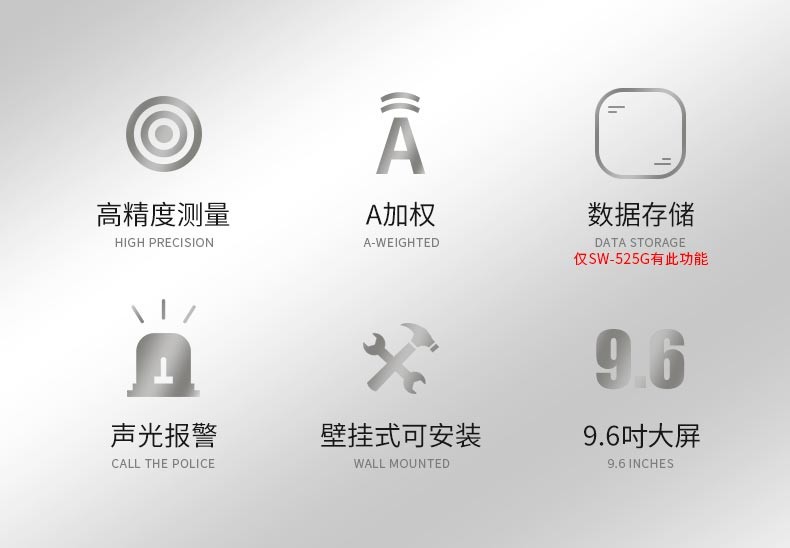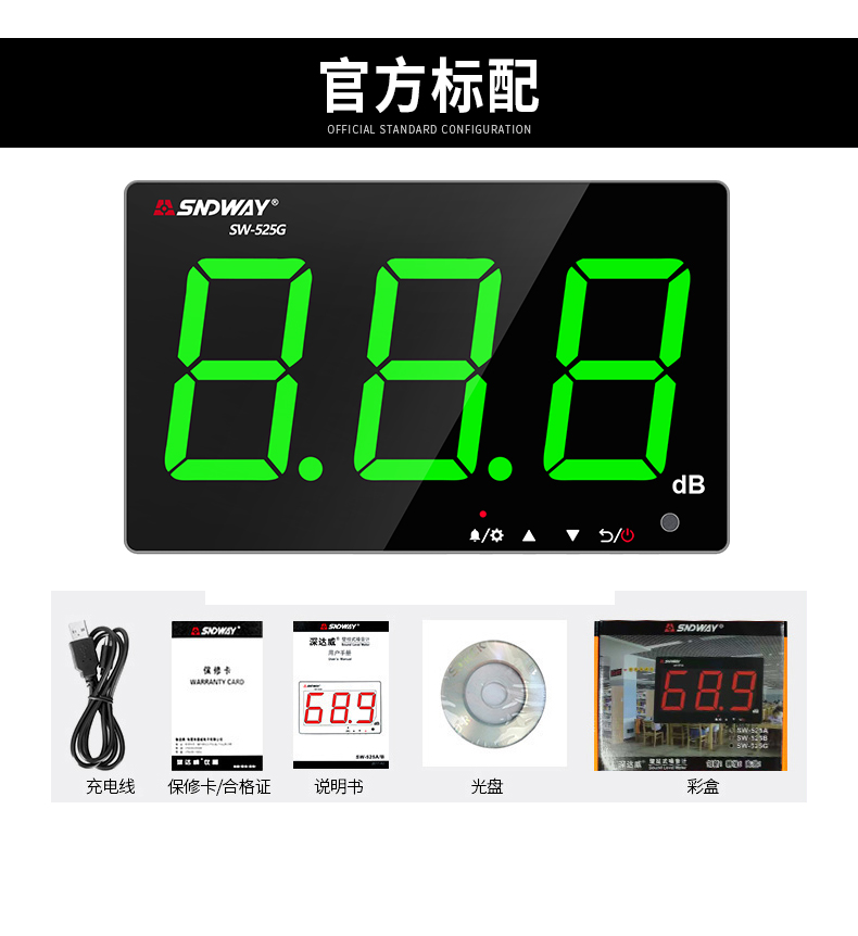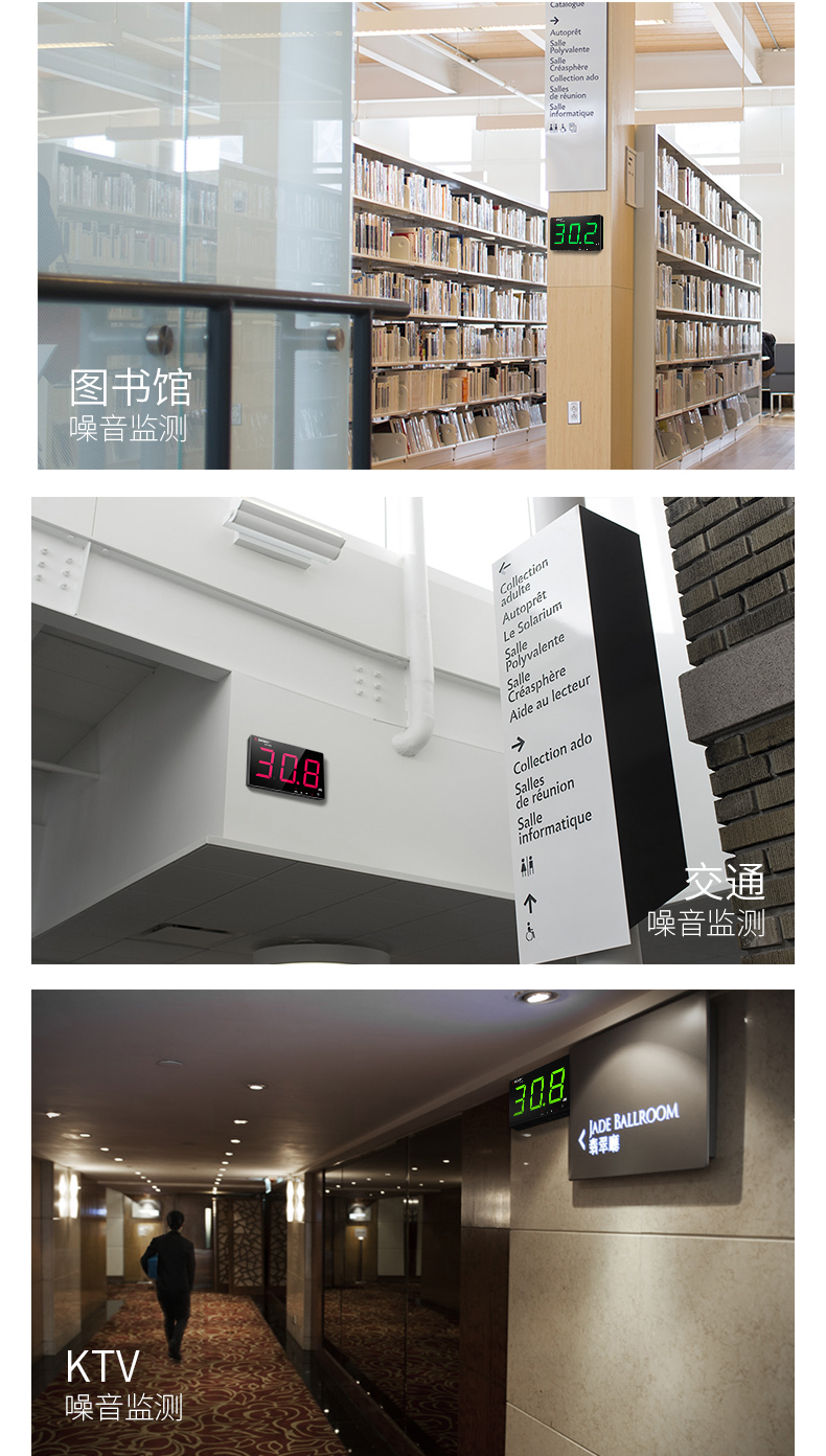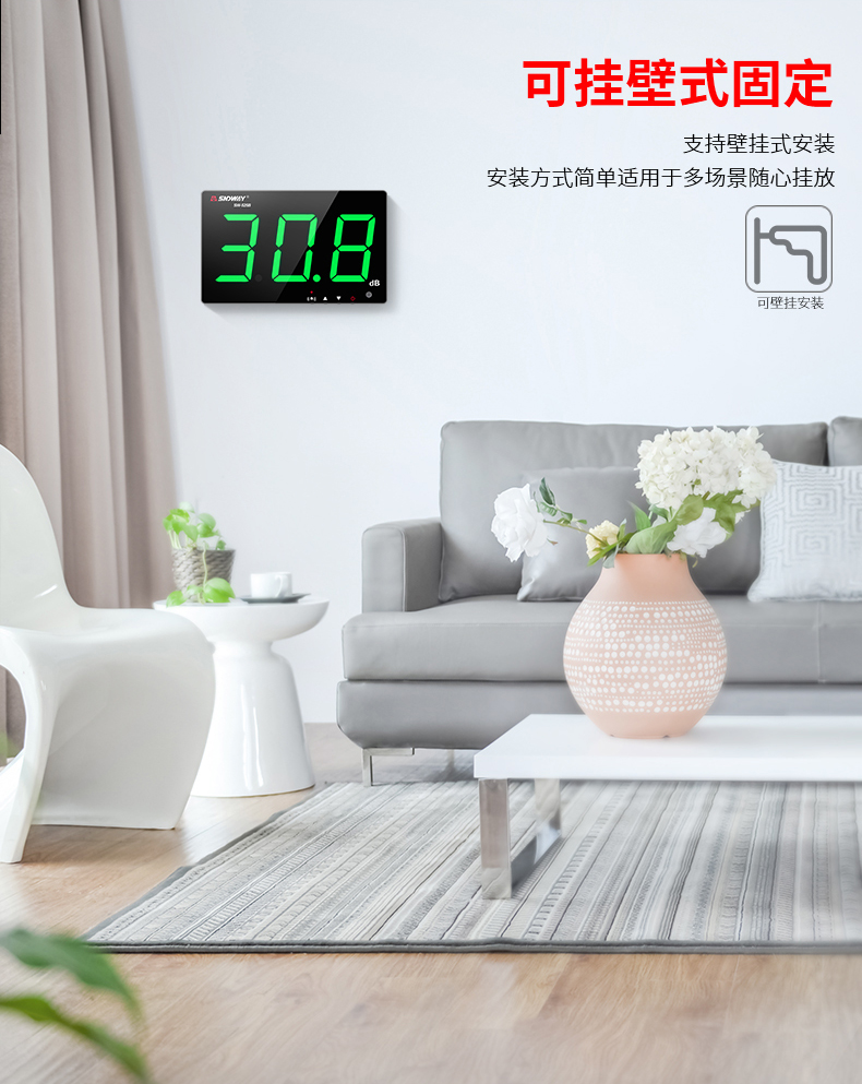 深达威 壁挂式噪音计 分贝仪 声级计大屏幕 环境噪音测试仪 实时监控高精度 SW-525A (声显警报)