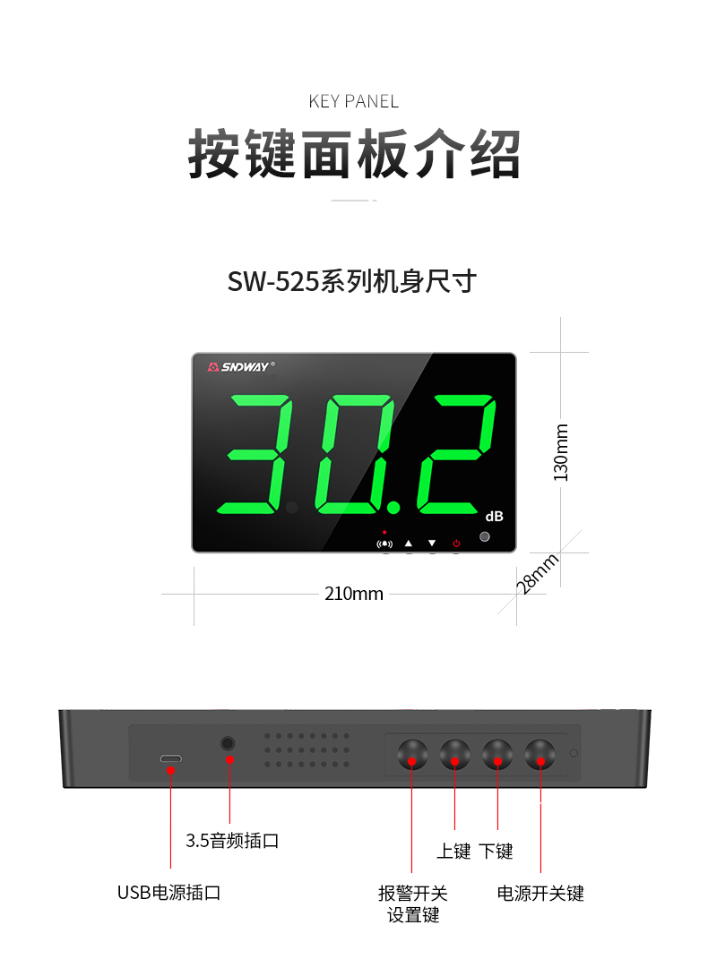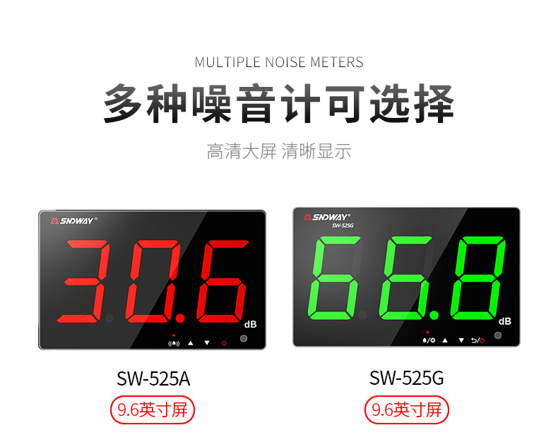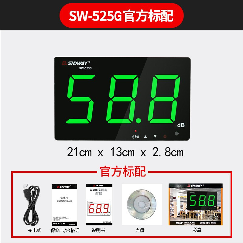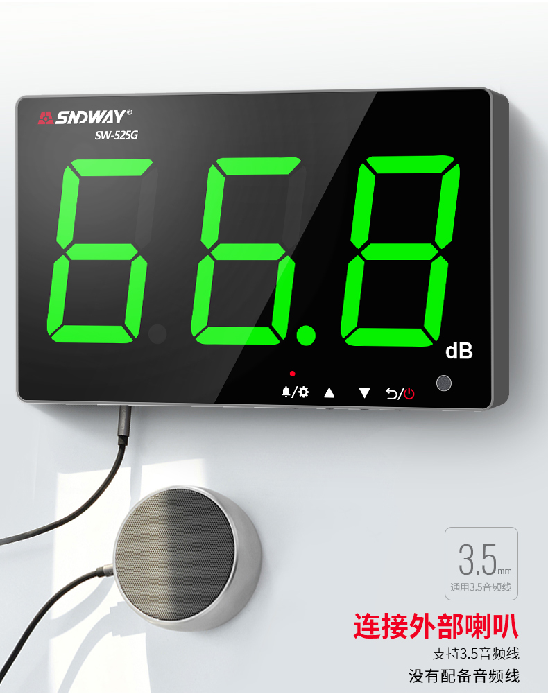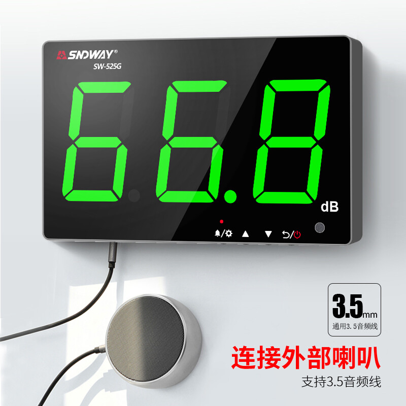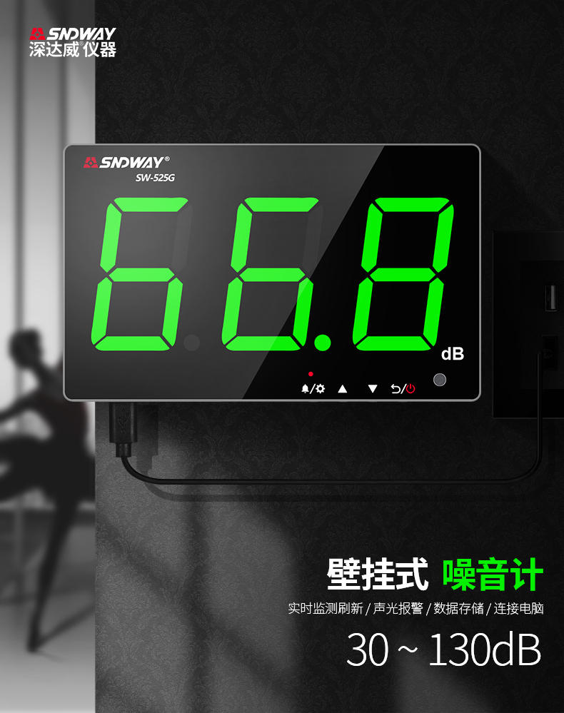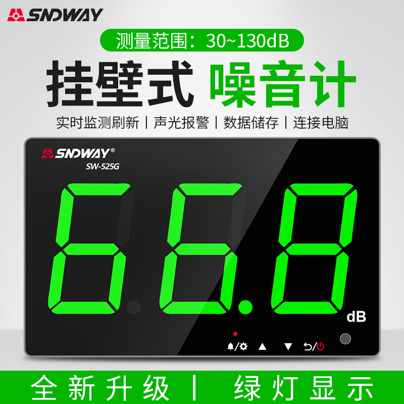 深达威 壁挂式噪音计 分贝仪 声级计大屏幕 环境噪音测试仪 实时监控高精度 SW-525G(声显报警+USB联机+数据存储)