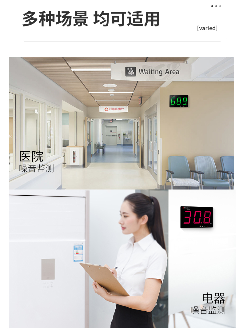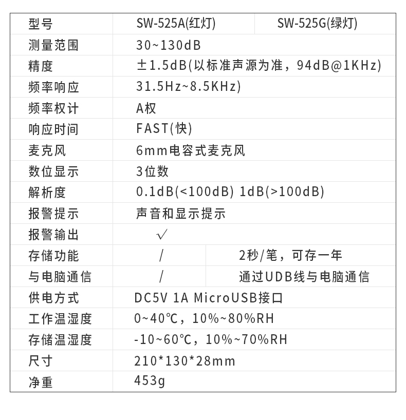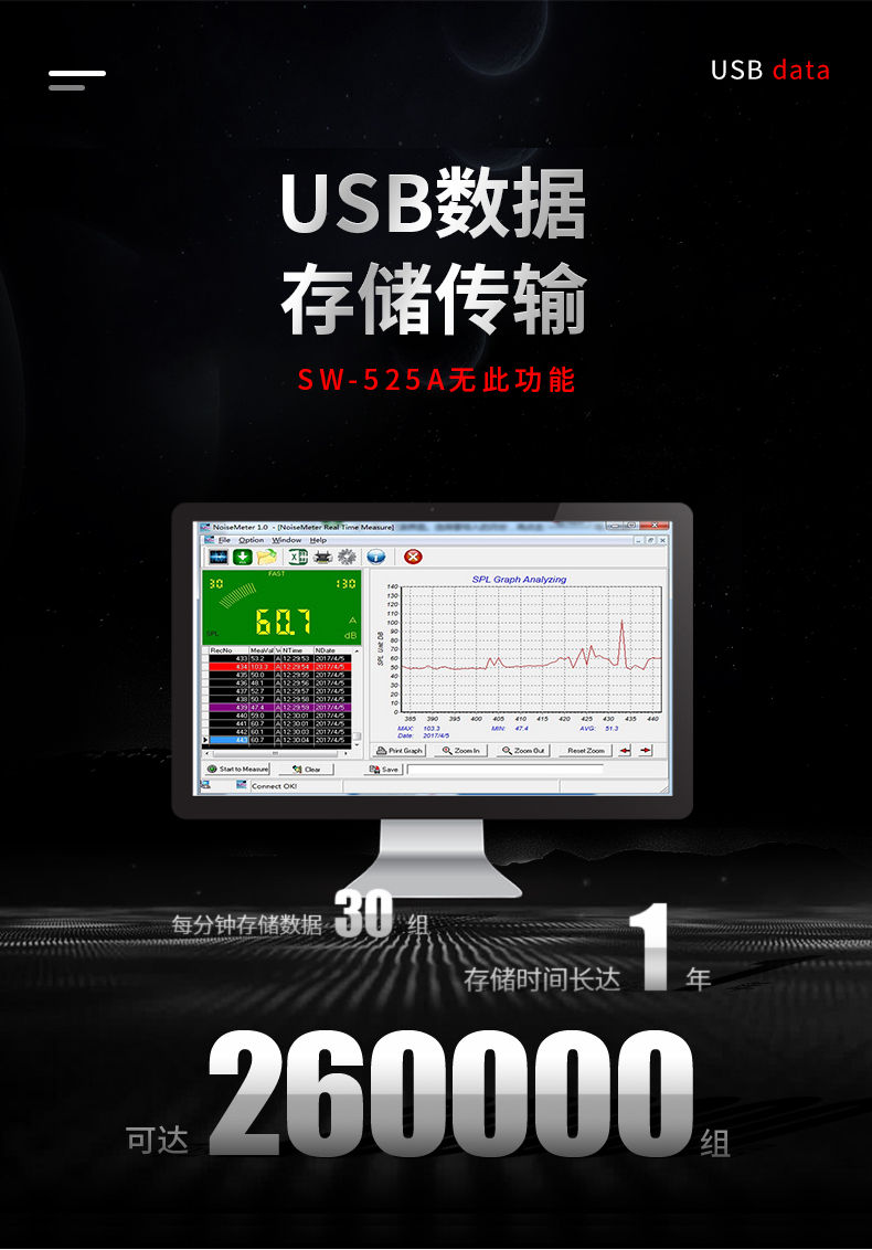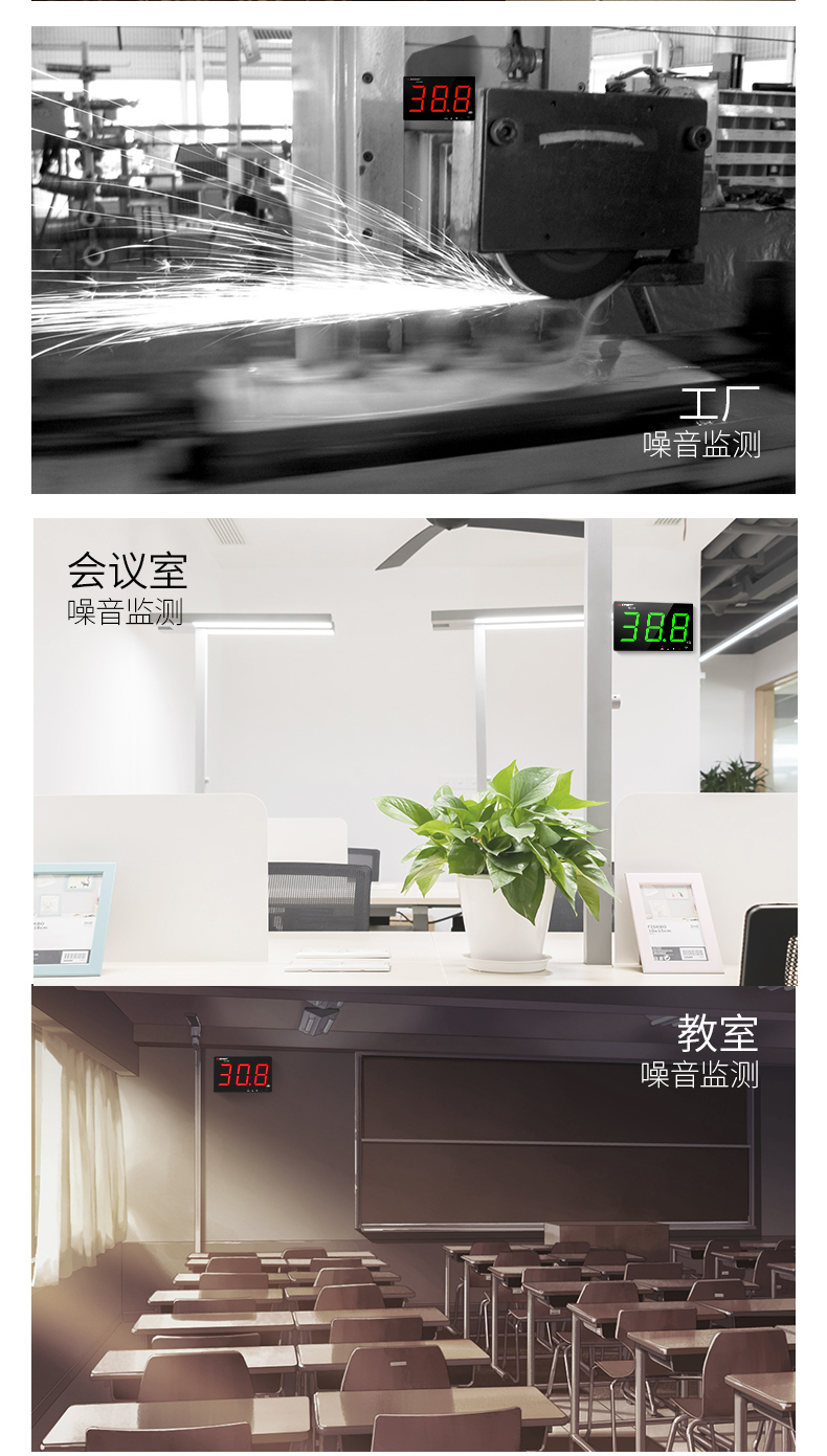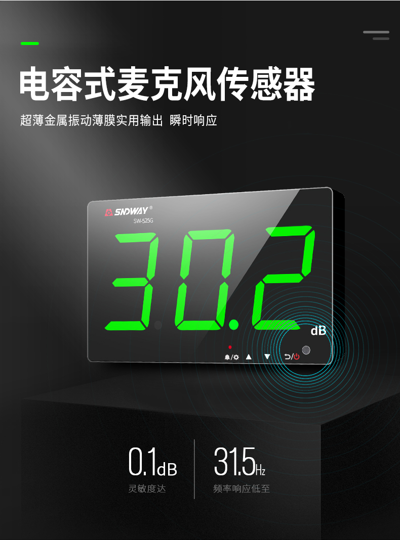 深达威 壁挂式噪音计 分贝仪 声级计大屏幕 环境噪音测试仪 实时监控高精度 SW-525G(声显报警+USB联机+数据存储)