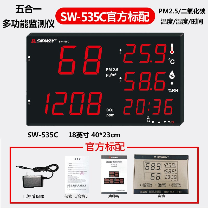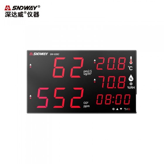 深达威 壁挂式PM2.5空气质量检测仪温湿度计二氧化碳检测仪环境监测测试仪分贝仪噪音计 SW535C二氧化碳PM2.5