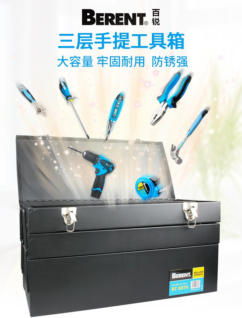 百锐 BERENT 多功能工具箱 BT8075 三层手提工具箱
