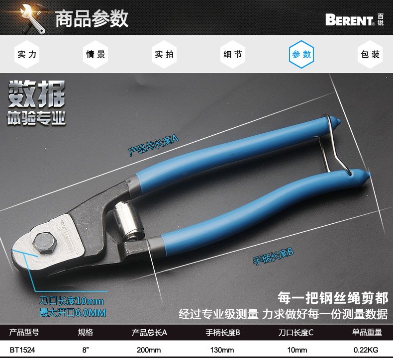 百锐 BERENT 8寸钢丝绳剪断线钳 BT1524 8