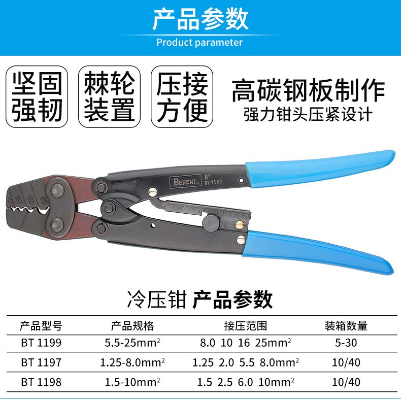 百锐 BERENT多功能 棘轮式端子压线钳子压接钳 BT1197 8