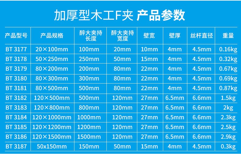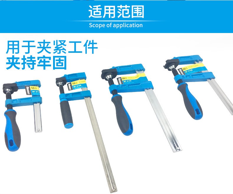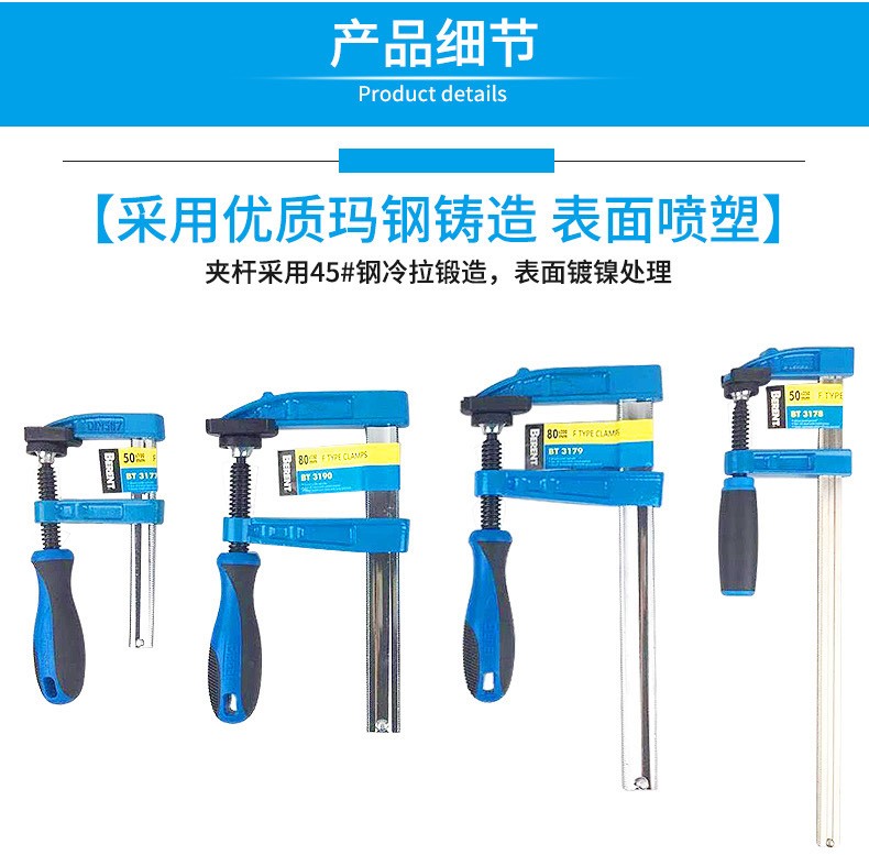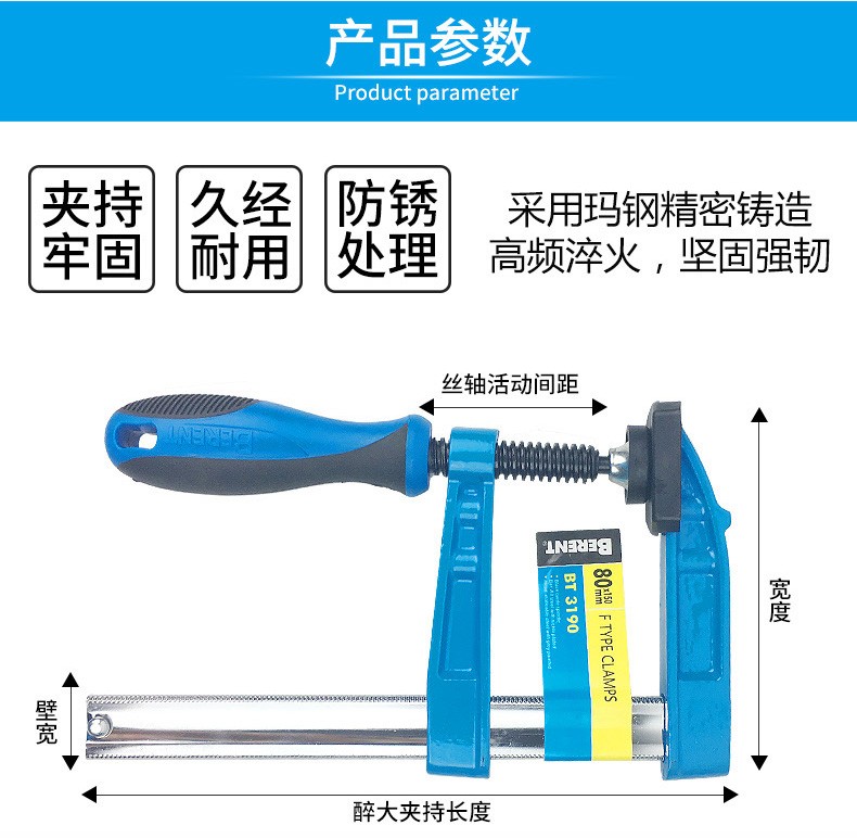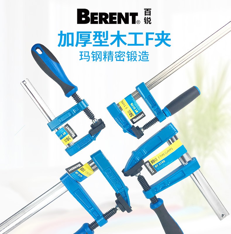 百锐 BERENT 重型F夹木工拼板夹快速木工夹f型夹快速夹紧器 木工机修夹具 木工工具BT3177 50*100mm