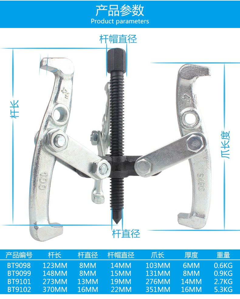 百锐 BERENT 三爪拉马器三脚拉马拉玛台式拉马三爪拔轴器轴承拆除器 汽修工具 BT9098 3寸(75MM)