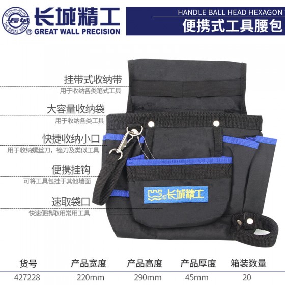 长城腰包牛津布电工工具包加厚耐磨防水多功能五金工具收纳包 22*29cm(腰带没有腰包)427228