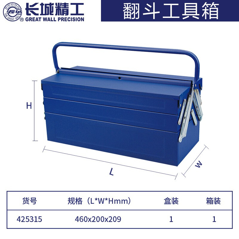 长城精工 工具箱 五翻斗铁皮五金工具手提箱 收纳箱 460*200*209mm 425315