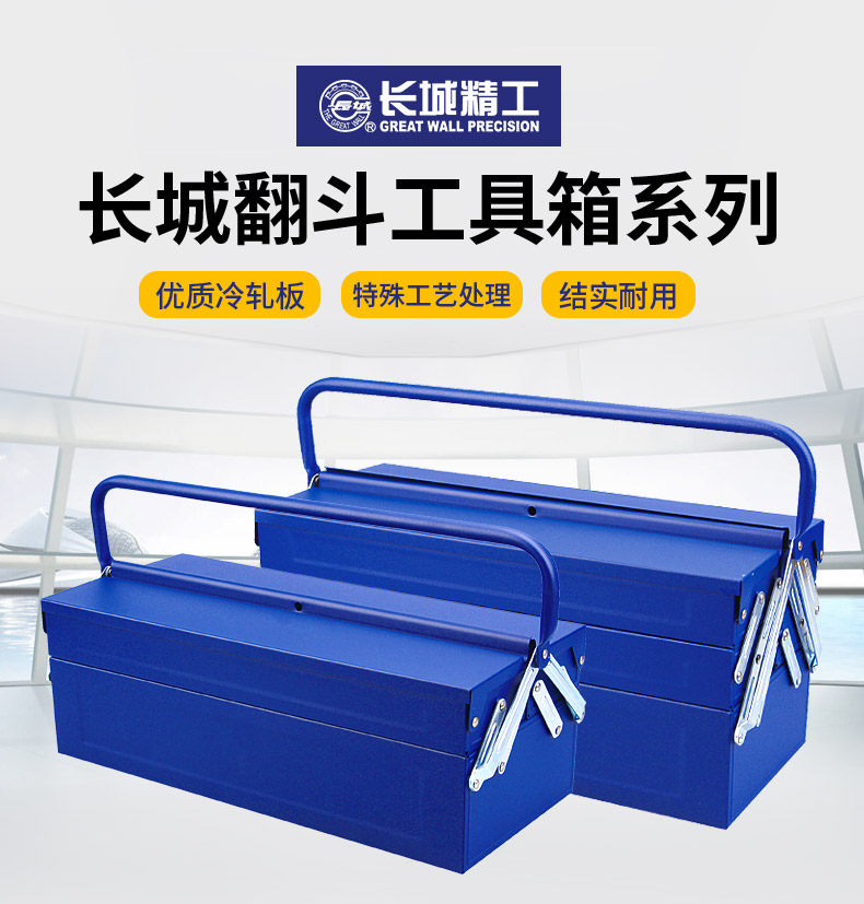 长城 大号工业级手提式 加厚三层五金工具箱 两层工具箱428x180x180mm 425312