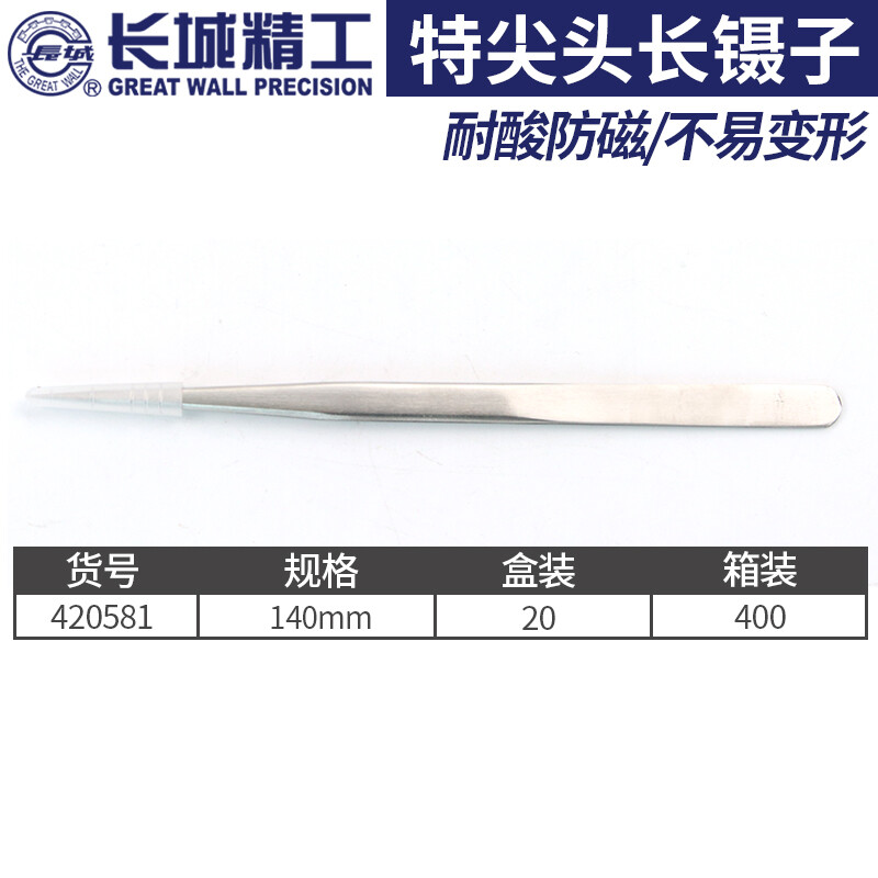 长城精工 特尖头长镊子 挑燕窝毛发工具 不锈钢 140mm 420581