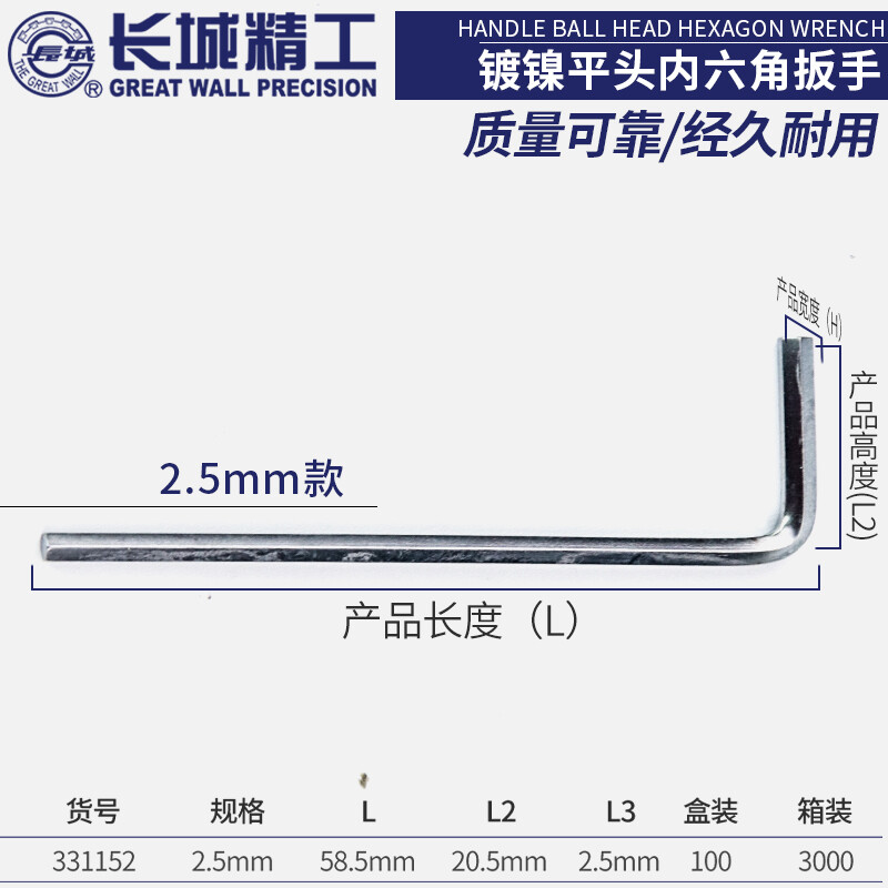 长城精工 内六角扳手 平头六棱螺丝刀 内六方 2.5mm 331152