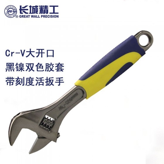 GREATWALL/长城精工Cr-V大开口黑镍双色胶套带刻度活扳手 301021
