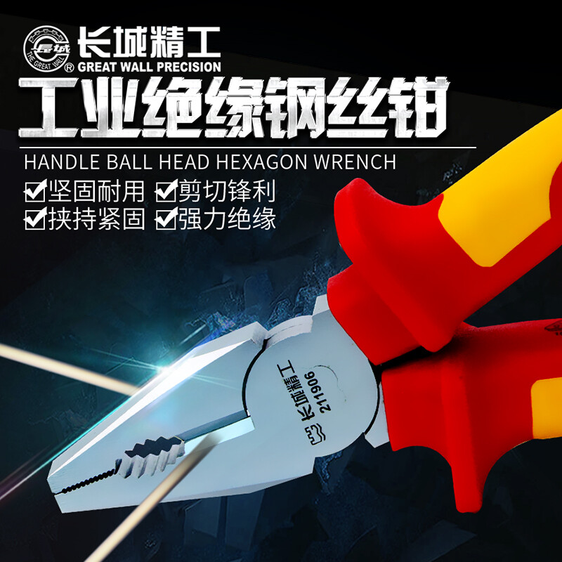 长城精工 老虎钳 VDE绝缘钢丝钳电工钳子手钳 8英寸 211908