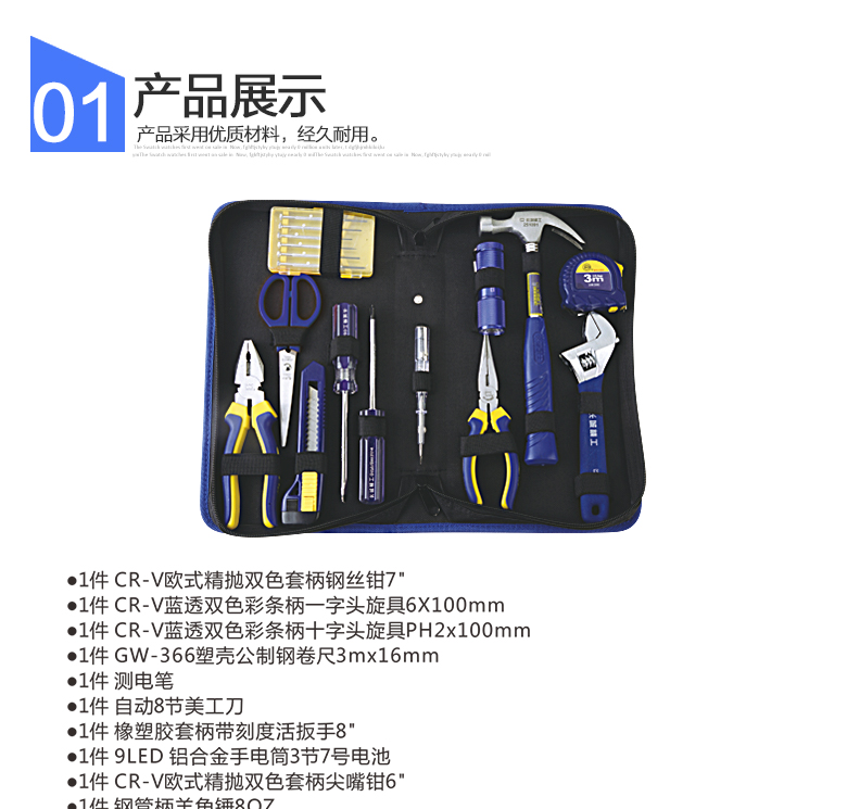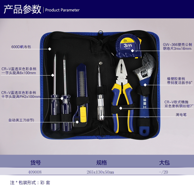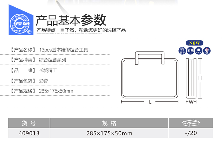 长城工具套装家用工具箱多功能日常维修全套水电工五金工具箱 13件(409013)