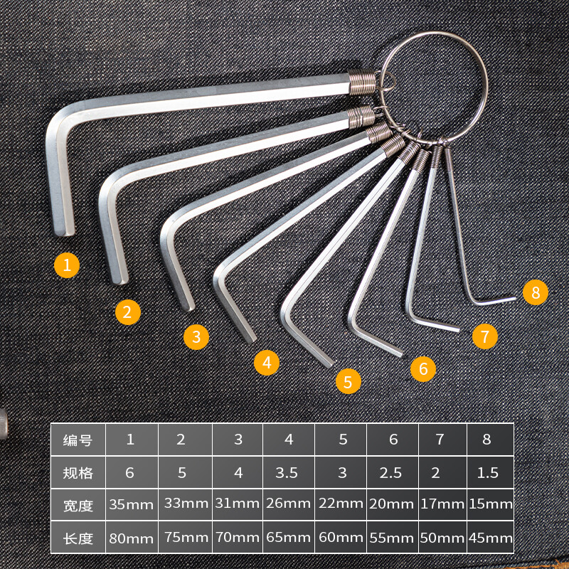 得力(deli) 吊环平头内六角扳手套装铬钒钢L型内六角螺丝刀扳手8件套 DL2171