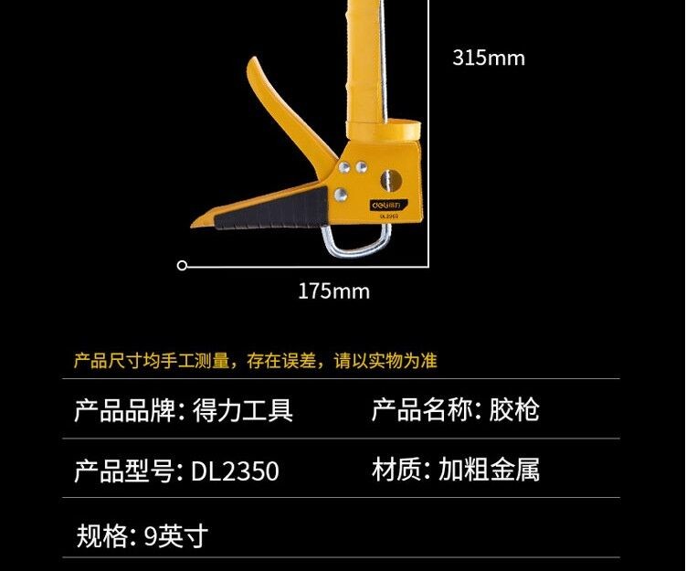 得力(deli) 结构胶枪玻璃胶枪省力硅胶枪打胶枪手动筒式压胶枪密封型堵美缝剂枪 9英寸半圆压胶枪DL2350