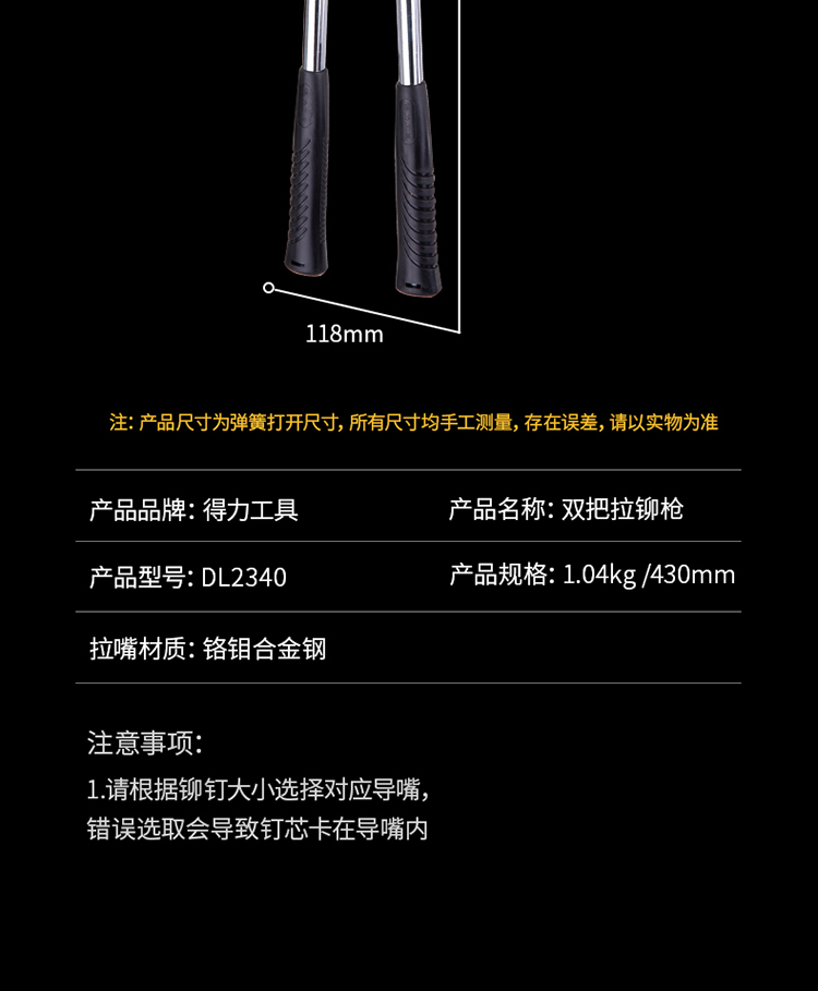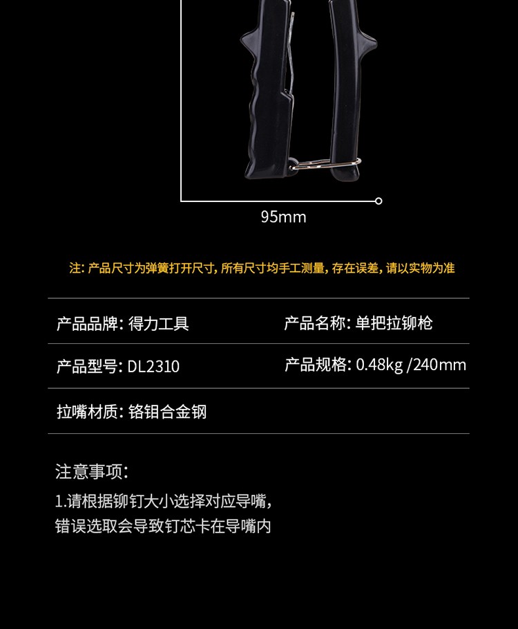 得力(deli) 铆钉枪双把手拉钉拉铆枪 单把手拉铆枪240mm DL2310