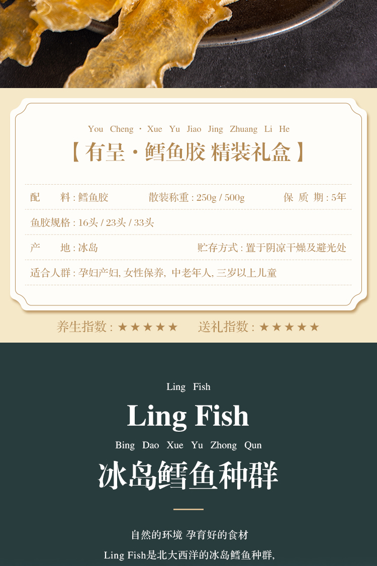 有呈 33头 冰岛鳕鱼胶 (500克礼盒装)