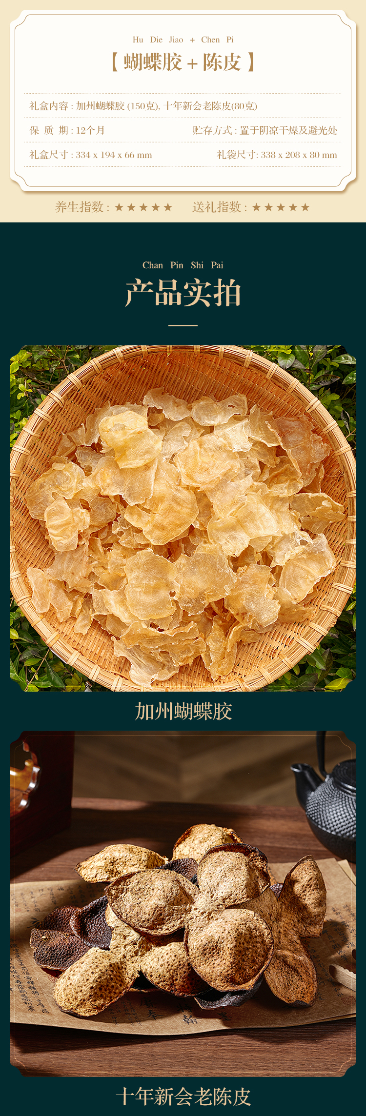 有呈 幸福琉璃系列 加州蝴蝶胶(150克)+十年新会老陈皮(80克) 礼盒装
