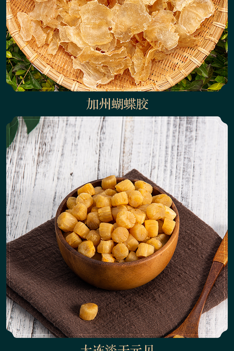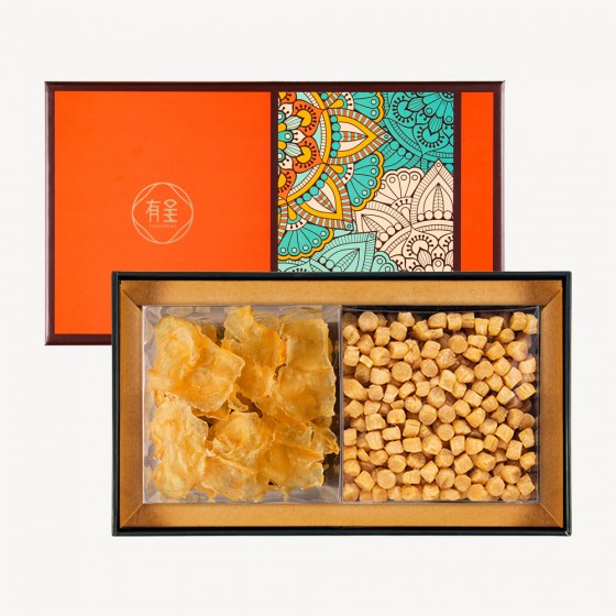 有呈 幸福琉璃系列 加州蝴蝶胶(150克)+大连淡干元贝(350克) 礼盒装