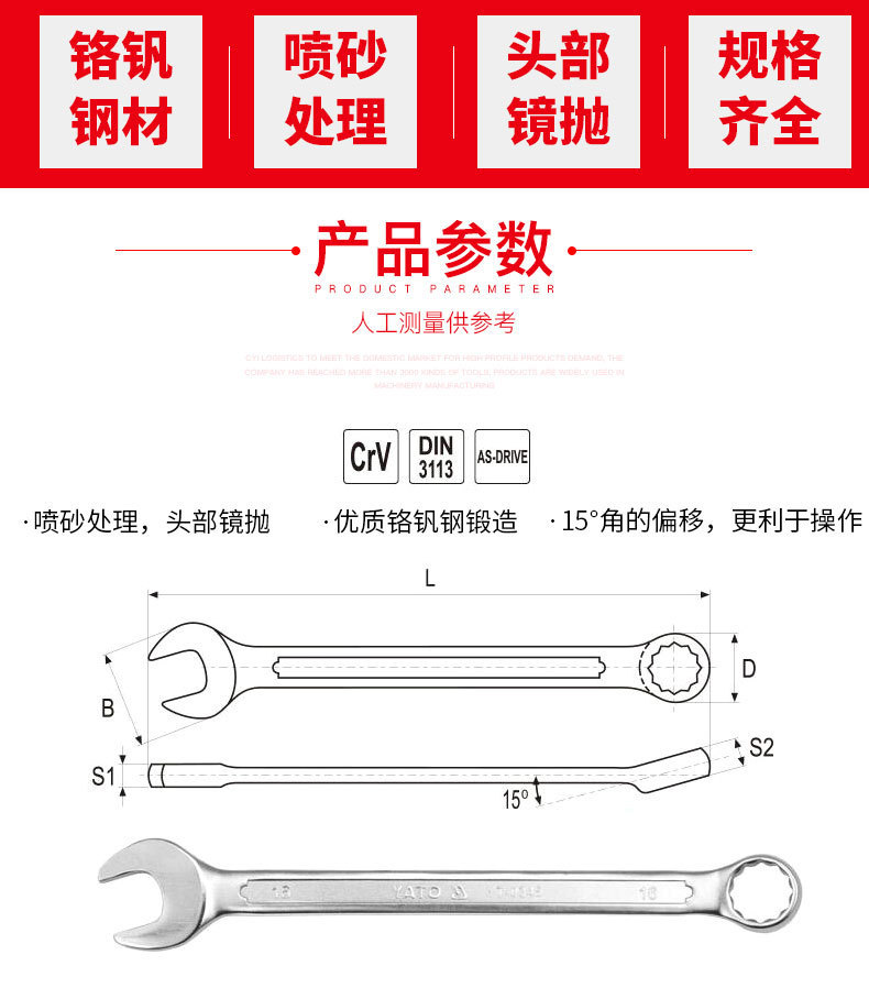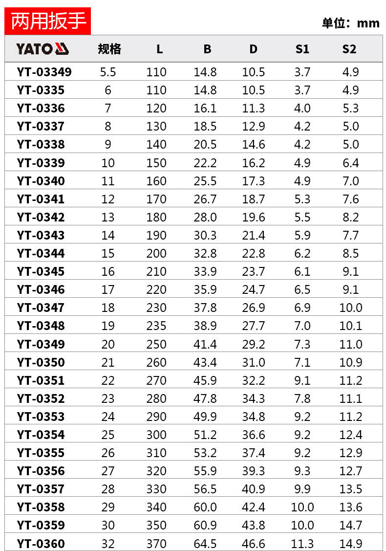 易尔拓(YATO)两用扳手开口梅花双头呆扳手YT-03349 5.5mm 铬钒钢