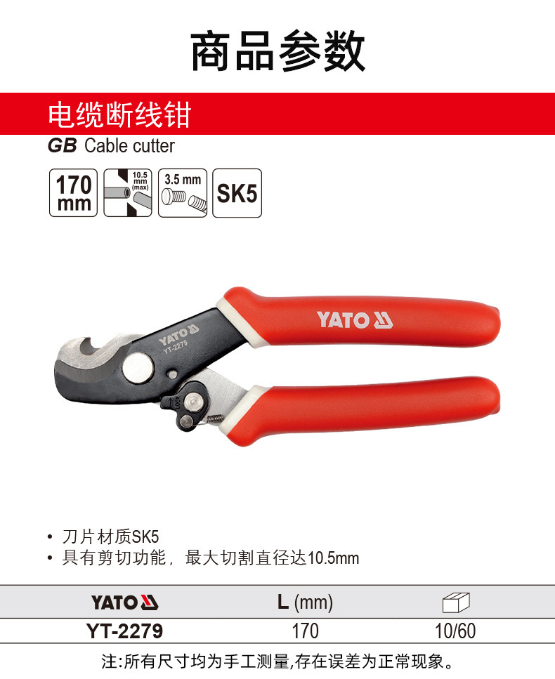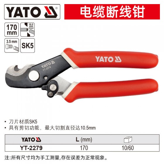 易尔拓 MAX Φ10.5MM L 170MM电缆断线钳1件 YT-2279