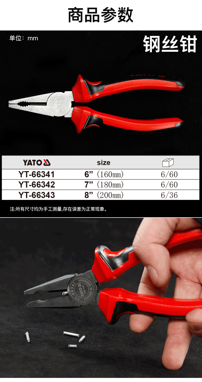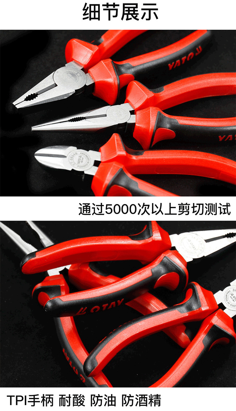 易尔拓(YATO)工业级多功能钢丝钳老虎钳 斜嘴钳 尖嘴钳