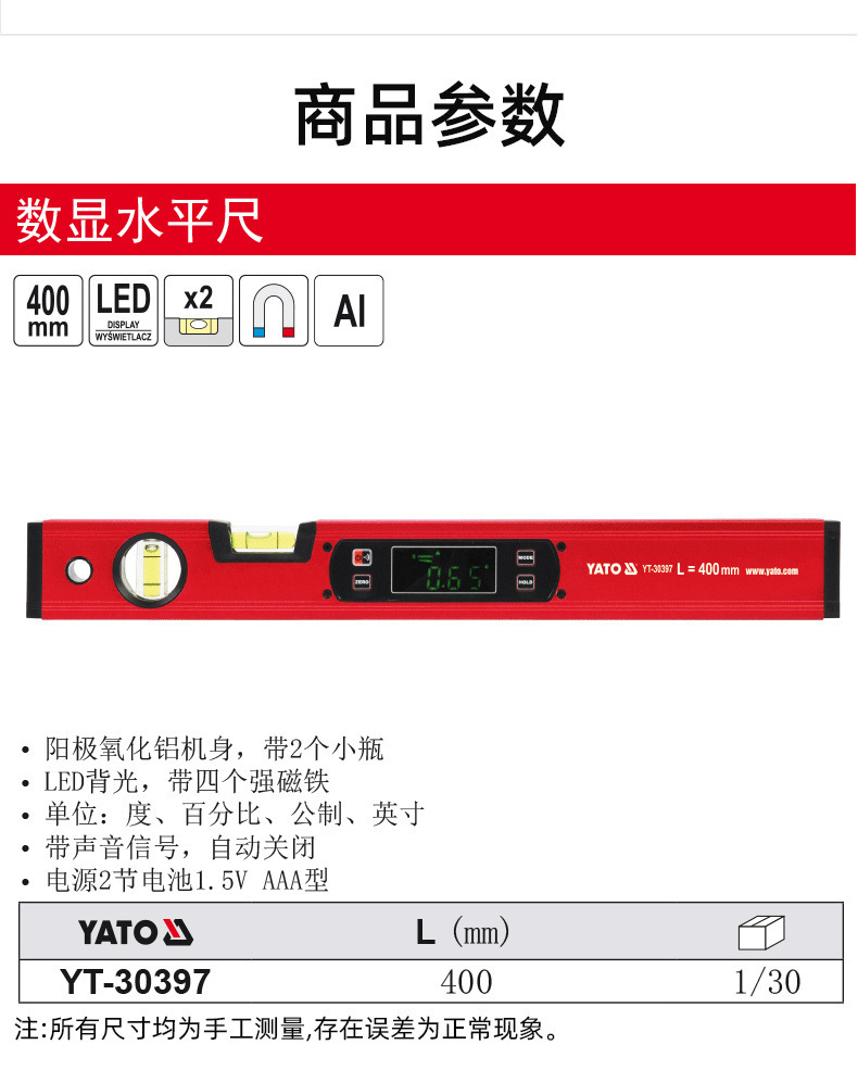 易尔拓 YATO 数显水平尺电子铝合金水平仪强磁性