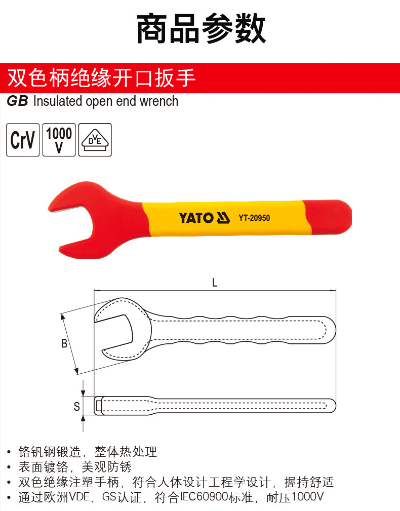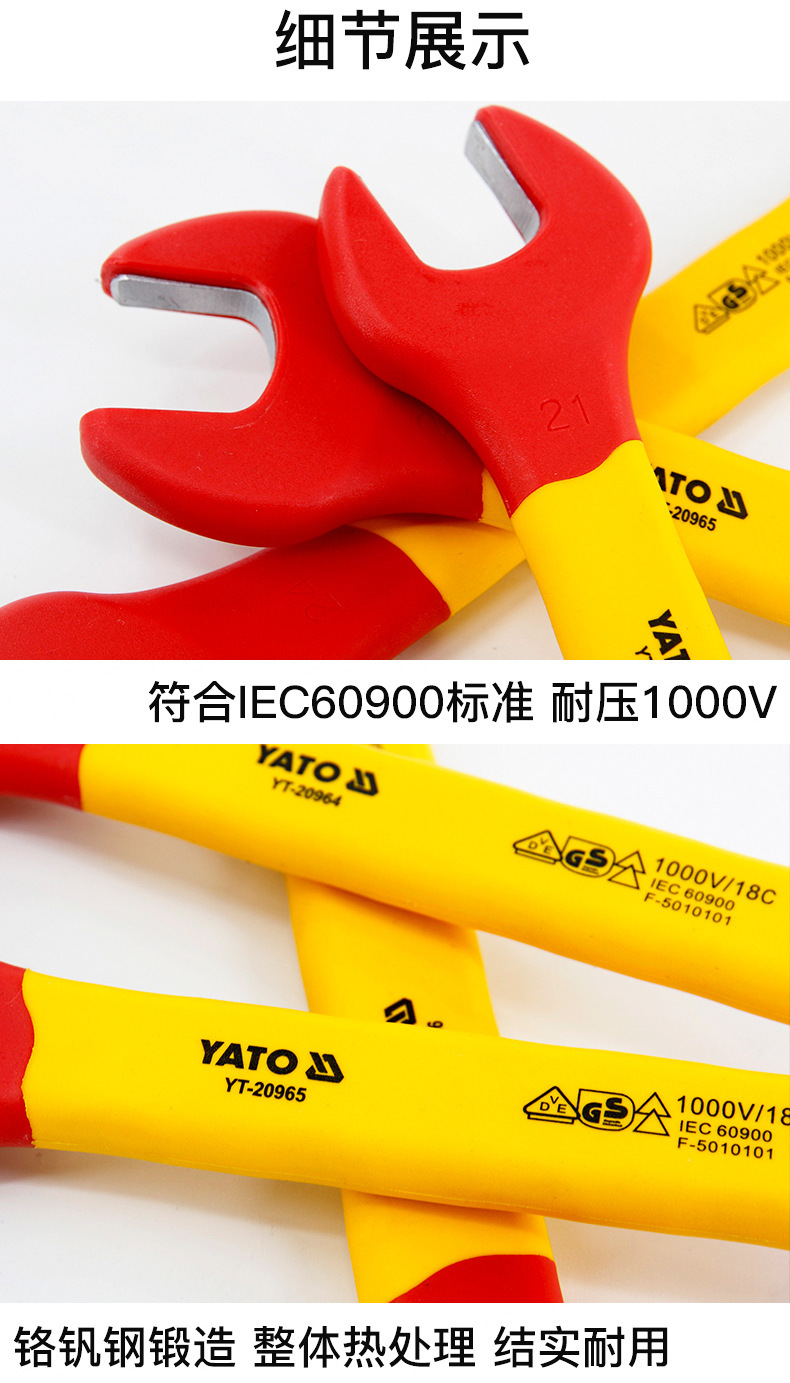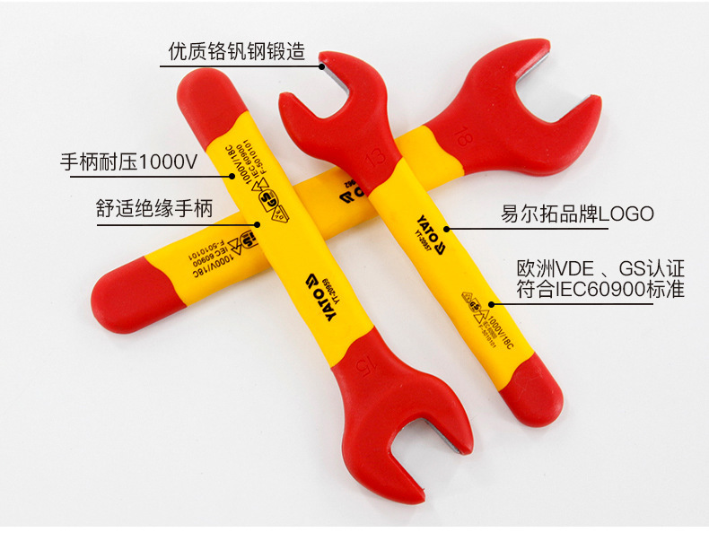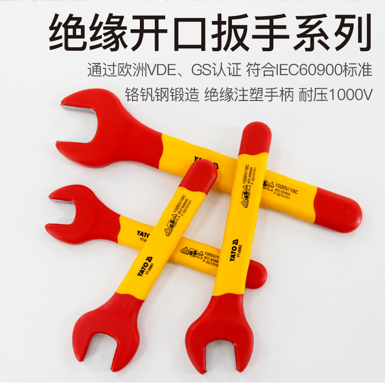 易尔拓绝缘简易单头开口呆扳手VDE认证耐压1000V电工呆头扳手