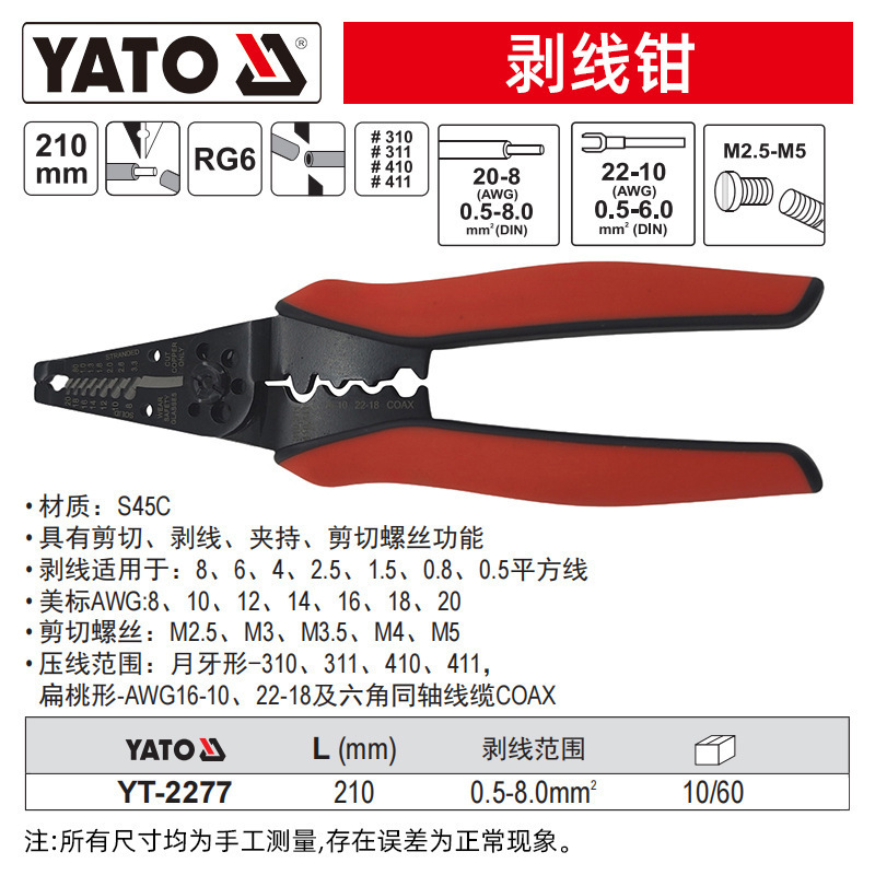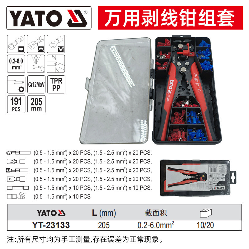 易尔拓YATO棘轮压线钳梯形冷压端子电工压接插簧线铜鼻子裸端子钳