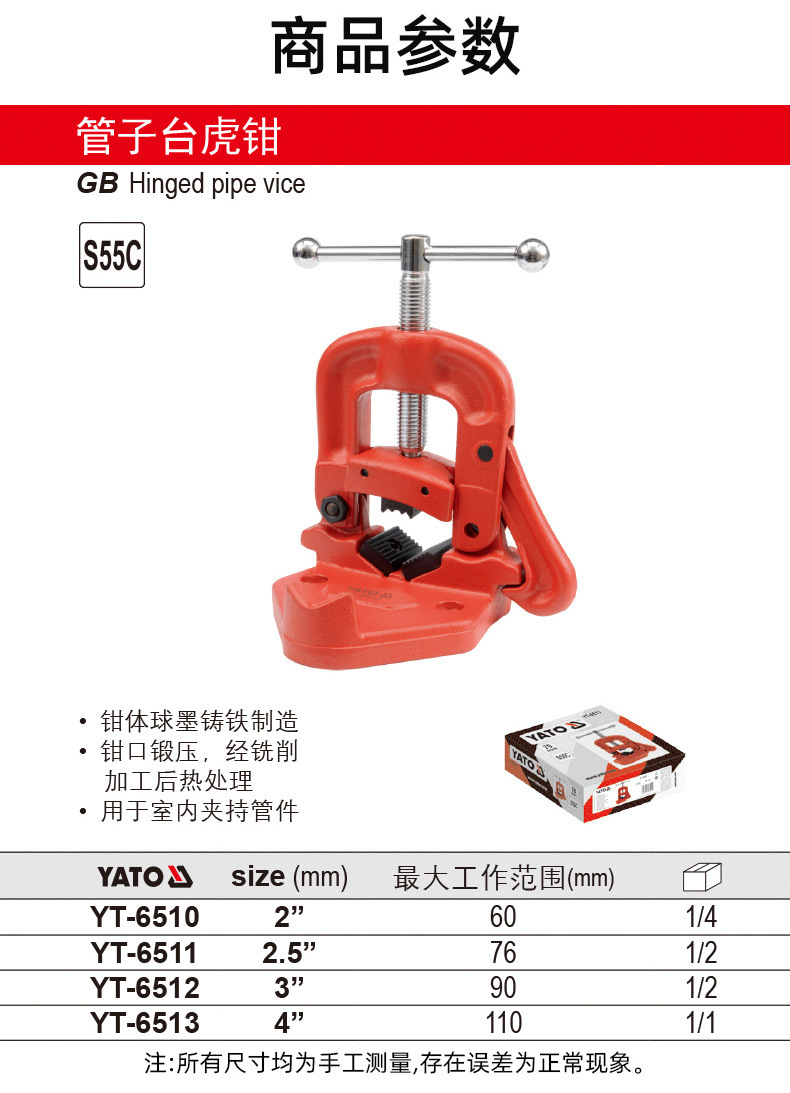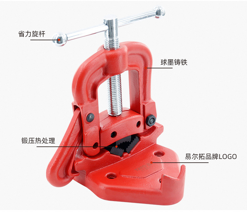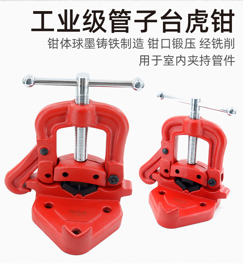 易尔拓管子台虎钳2-4英寸龙门钳架夹水管子钳加重型台钳压力钳