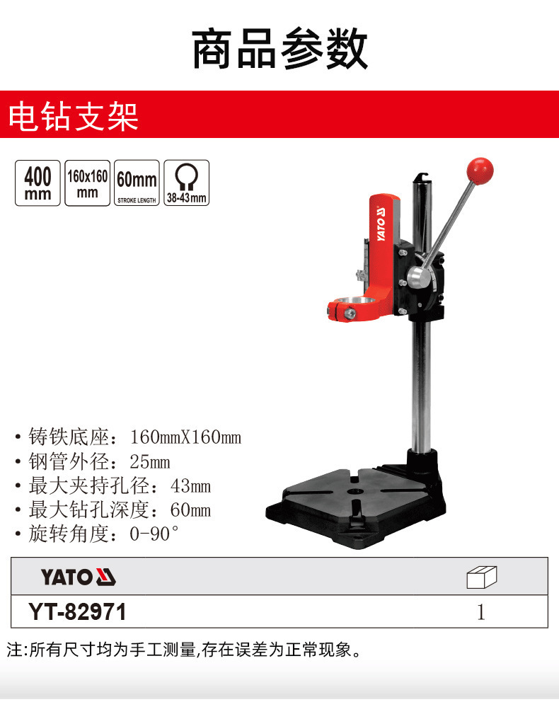 易尔拓 YATO 手电钻变台钻微型小型支架43mm 400mm YT-82971