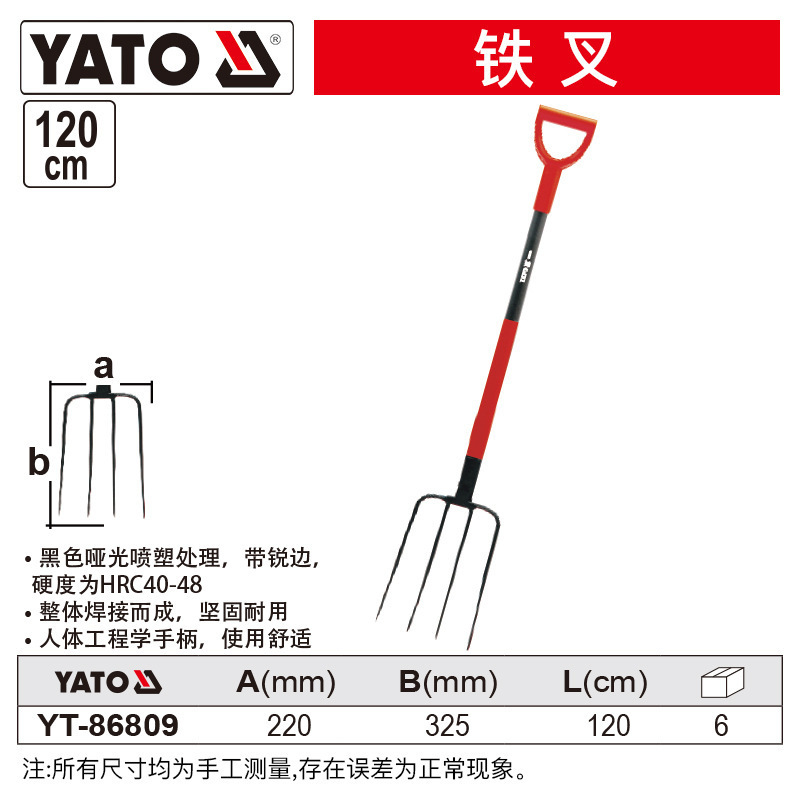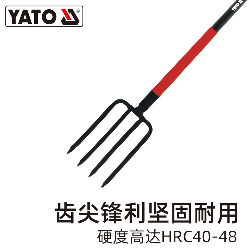 YATO易尔拓农用翻地松土四齿钢叉开荒挖土叉子全钢木杆铁叉头